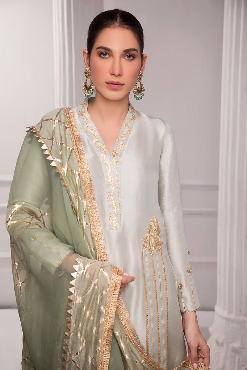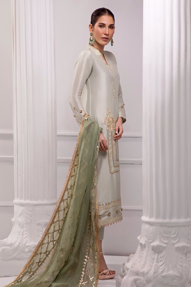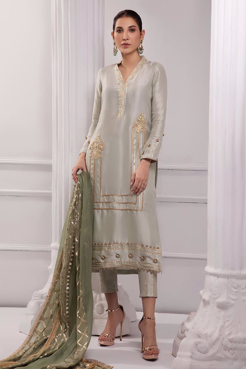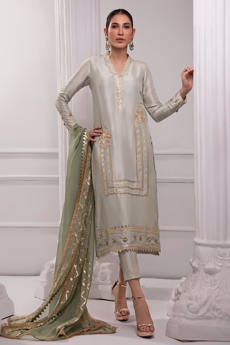 Color: Grey Fabric: Raw silk Work Details: Embellished
