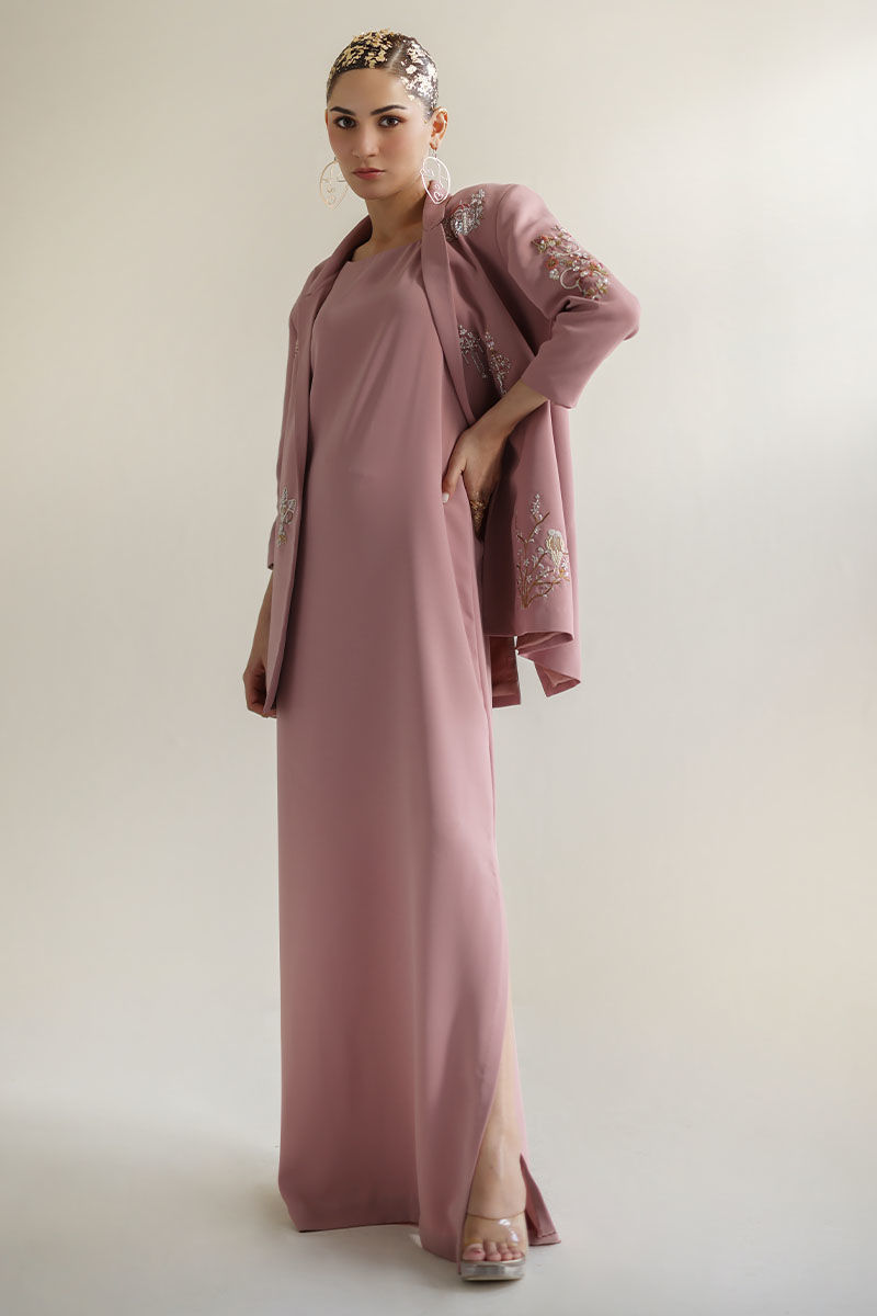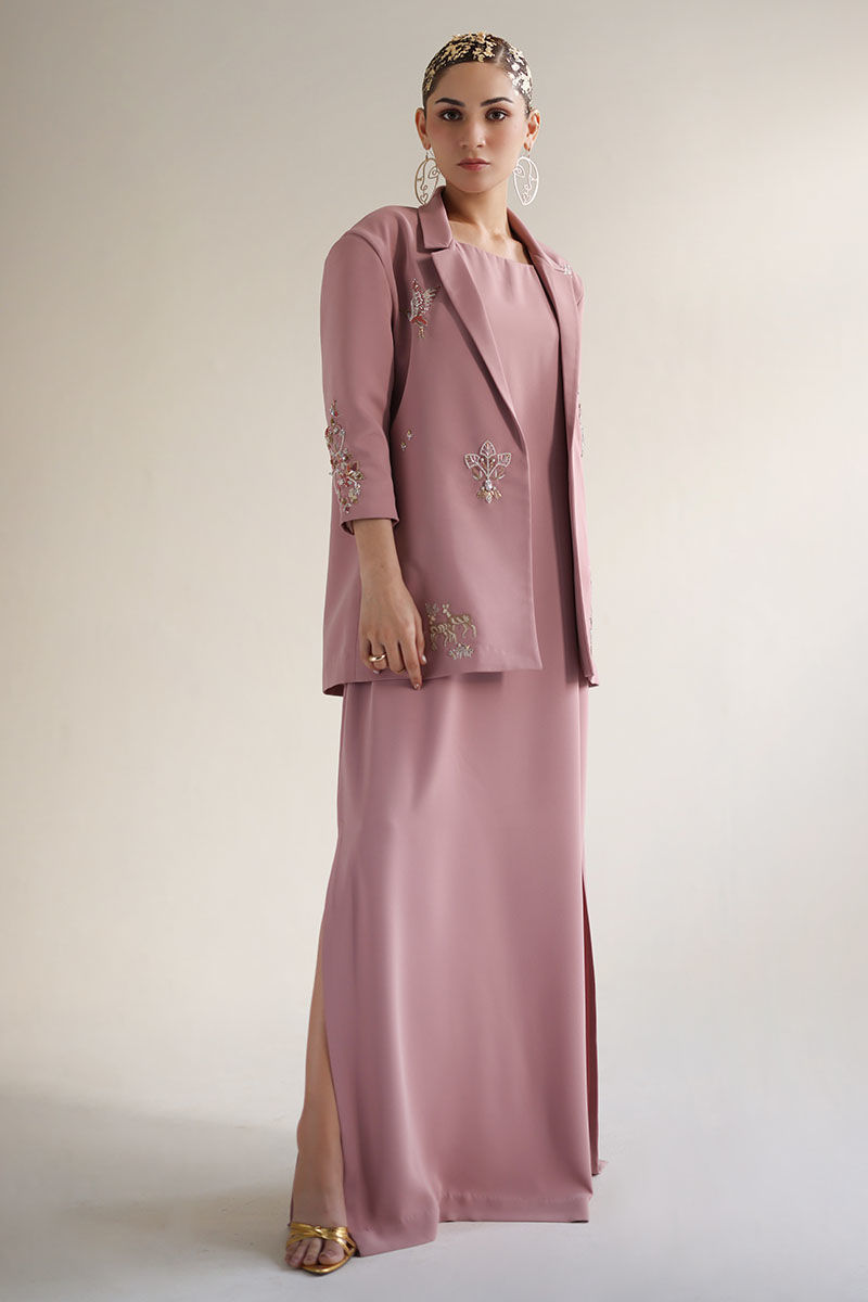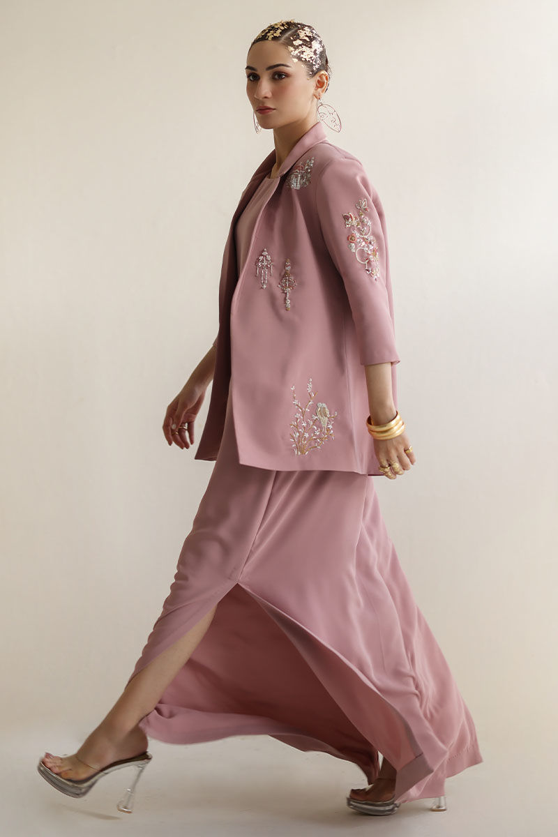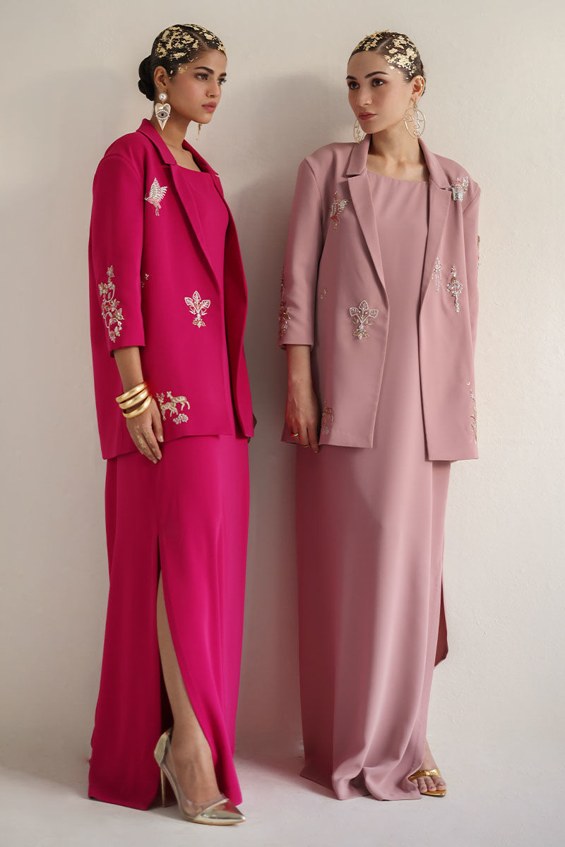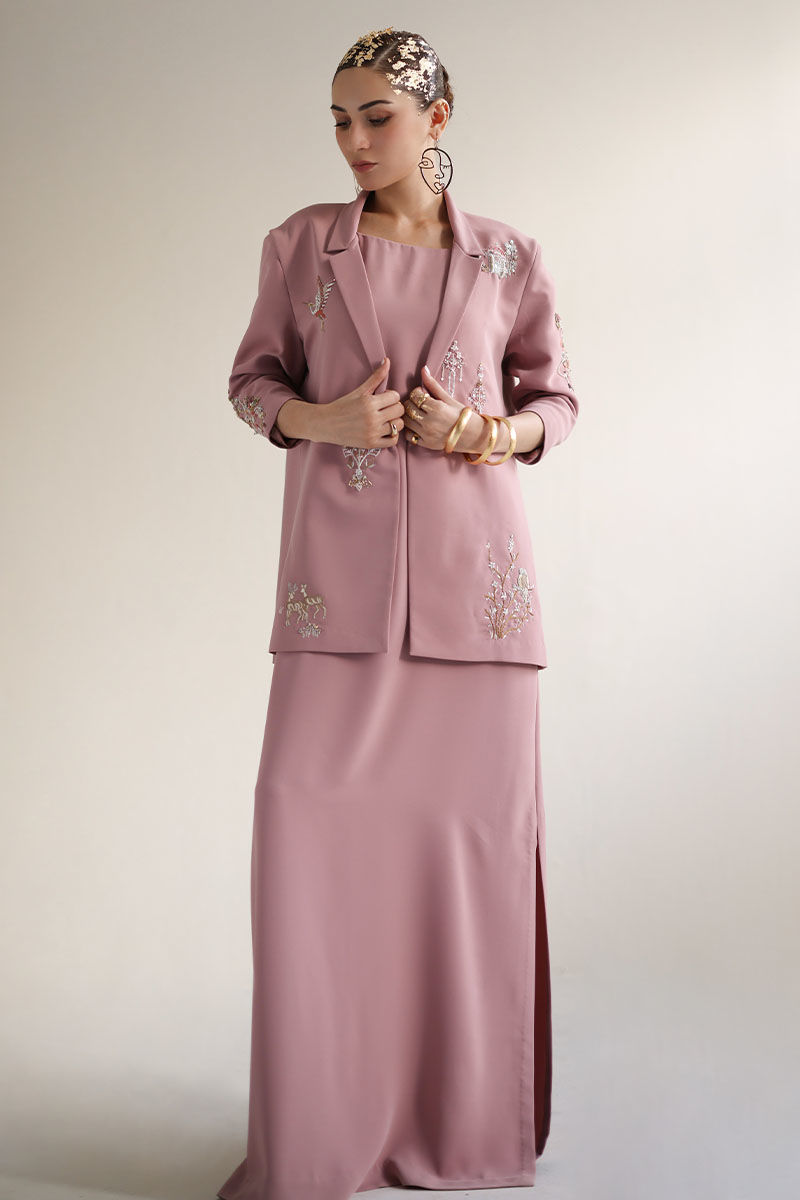 Introducing our coral blush kaftan with blazer, a masterpiece of elegance and style. Crafted from luxurious Italian crepe, this ensemble exudes sophistication and charm. The blazer features intricate detailing including resham, cutdana, tiki stone, sequins, pearls, moti, kora, and dabka work, adding a touch of glamour to your look. Perfect for special occasions or evening events, this ensemble promises to turn heads and leave a lasting impression. Elevate your wardrobe with this timeless and chic ensemble. The model's Jacket length is 29 and kaftan length 58.