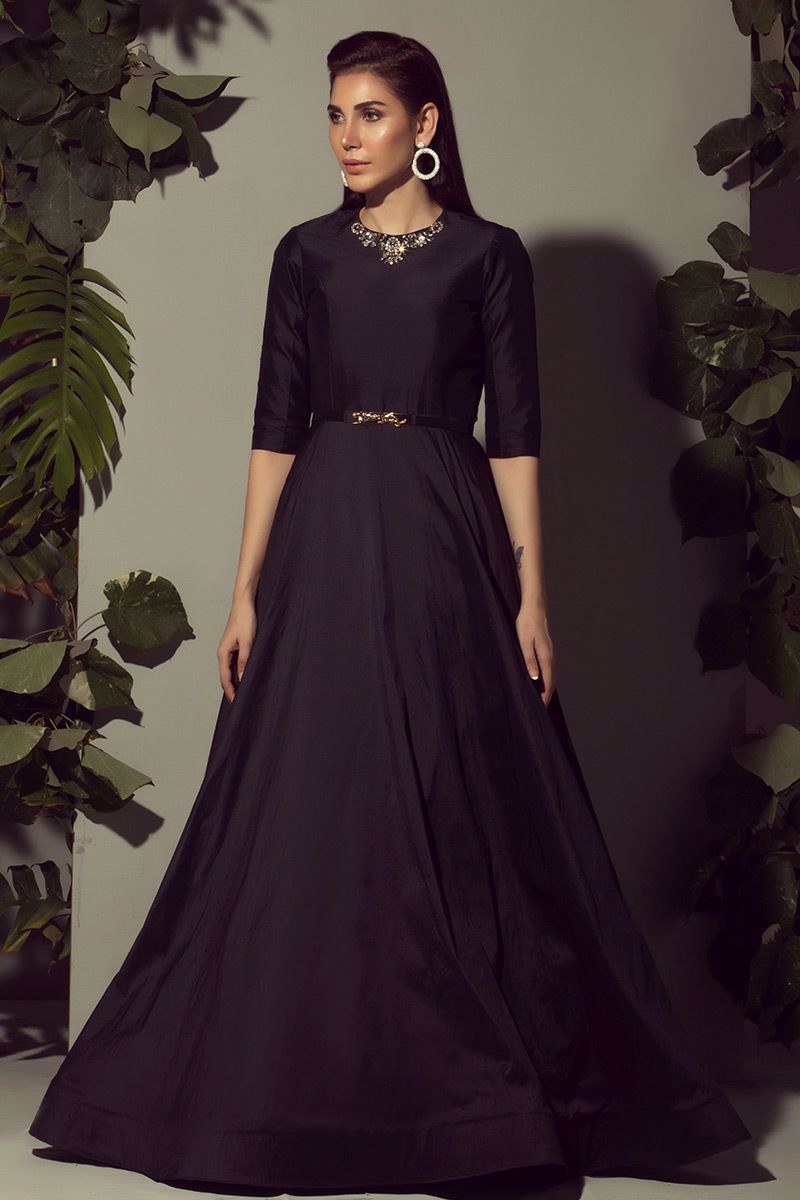 Color: Black Fabric: Silk Work Details: Stones and crystals