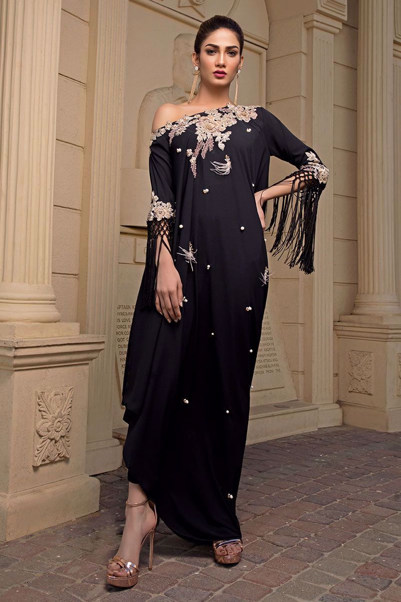 Color: BLACK Fabric: Georgette Work Details: Zari, pearls and cut dana