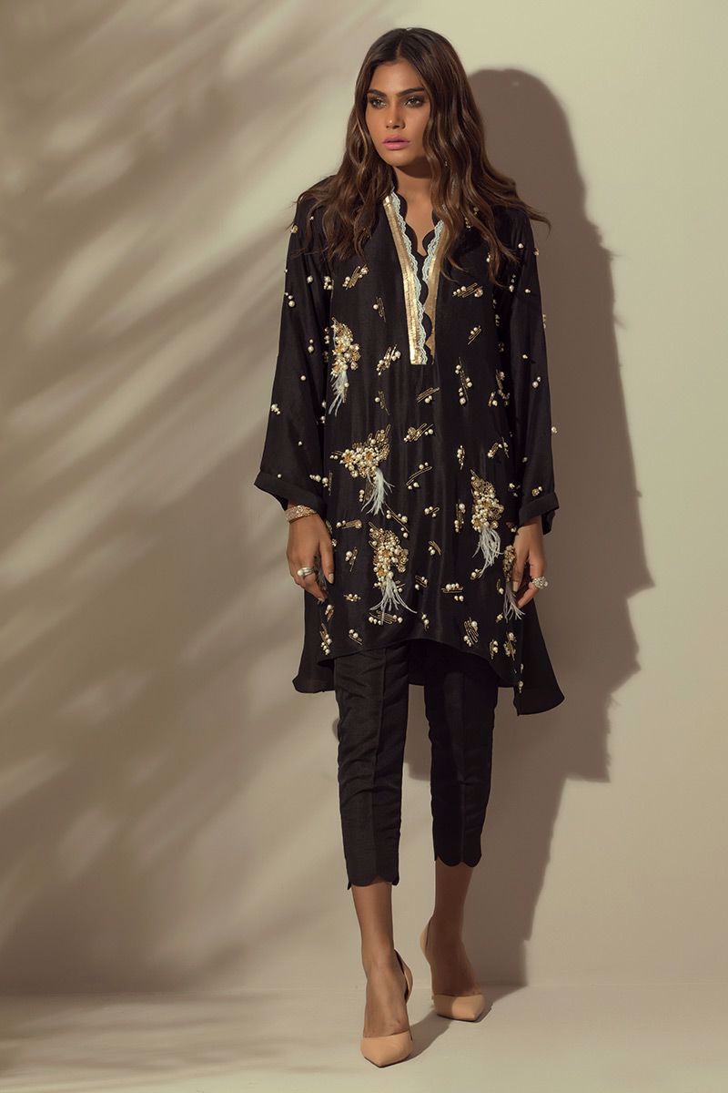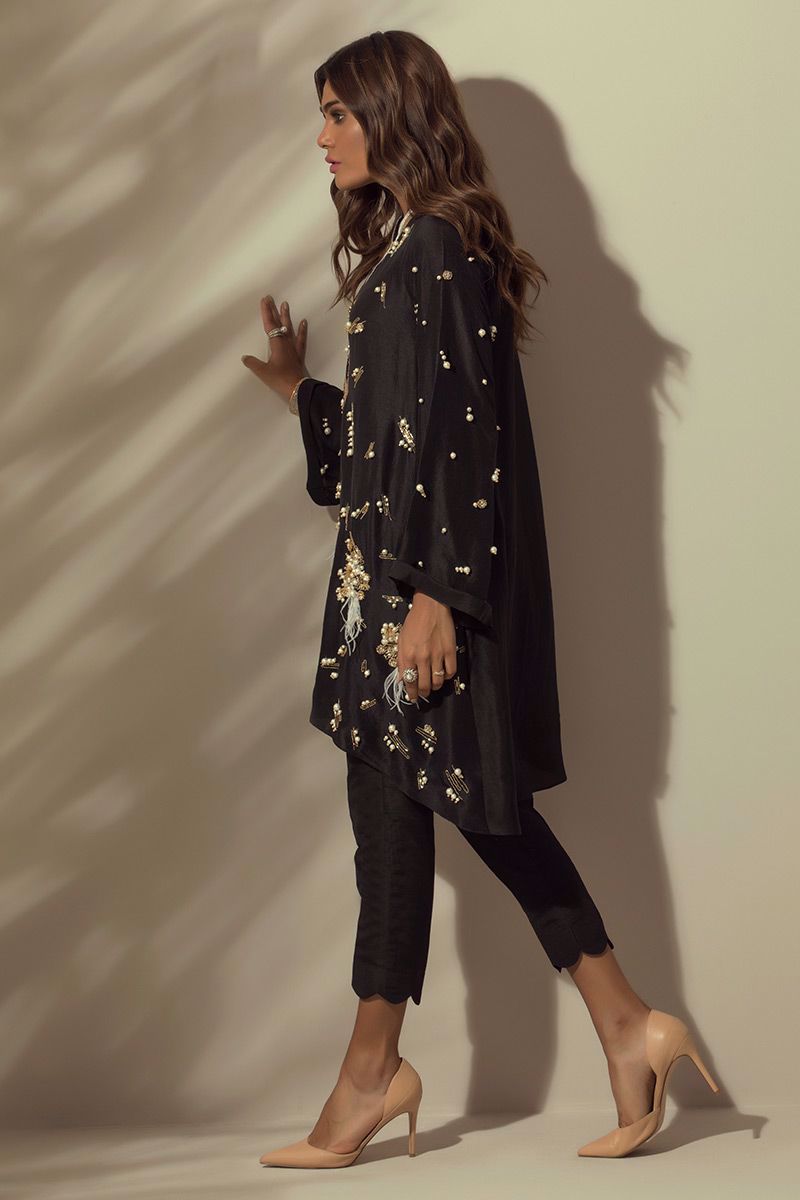 Color: Black Fabric: Silk Work Details: Pearl motifs