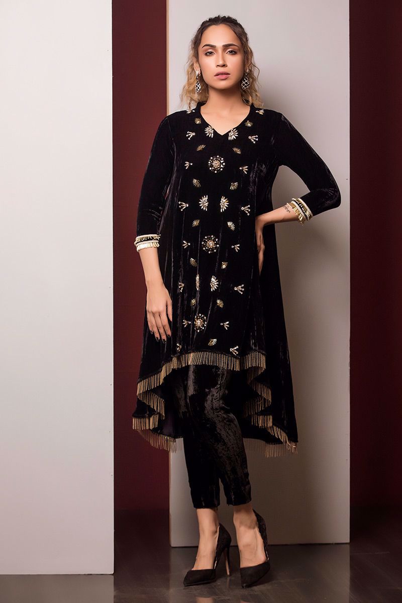 Color: BLACK Fabric: Velvet Work Details: Stones, cut dana and tassels