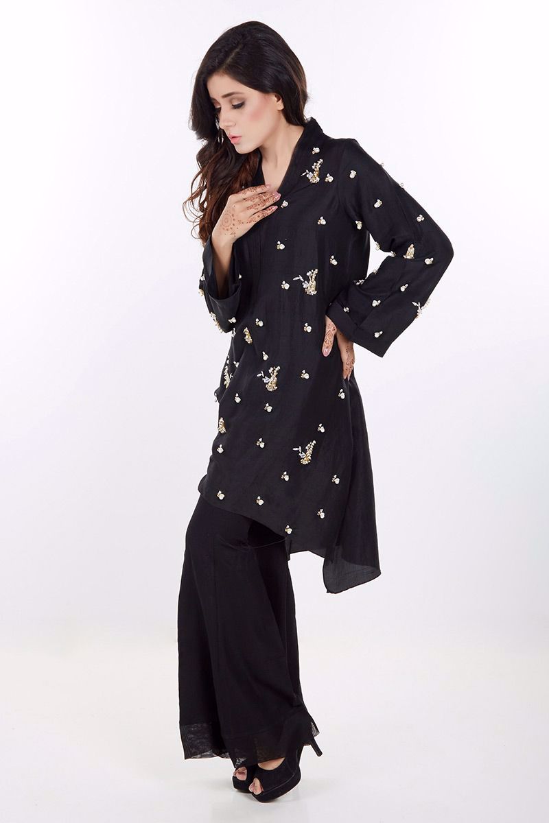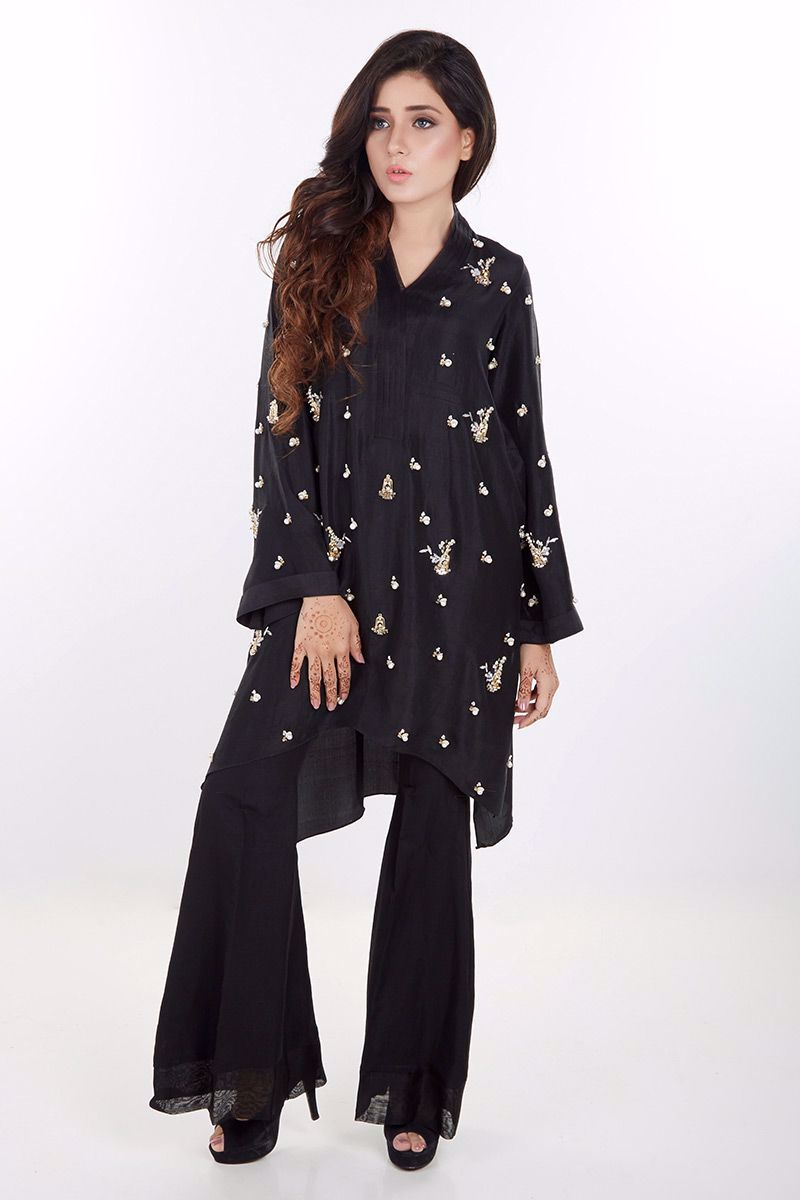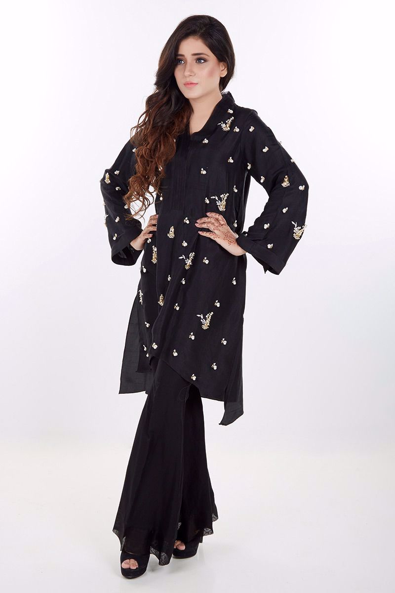Color: Black Fabric: Silk Work Details: Pearls