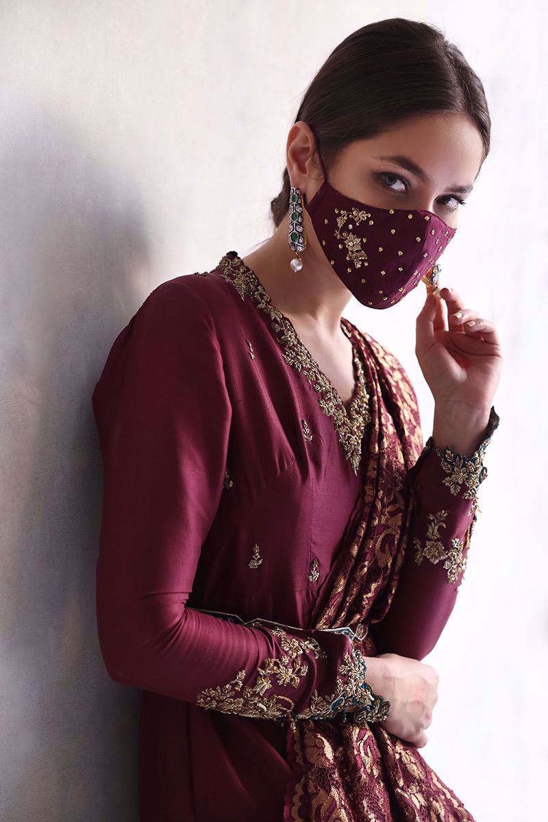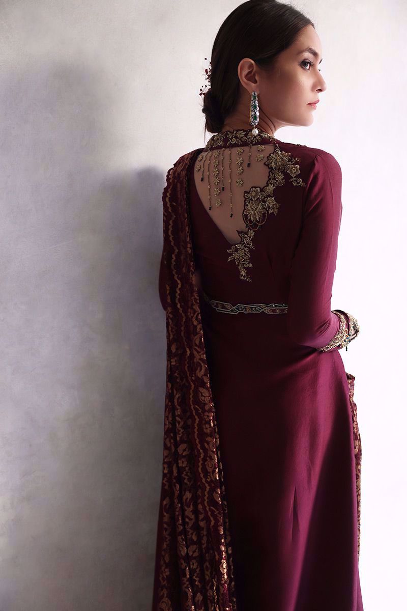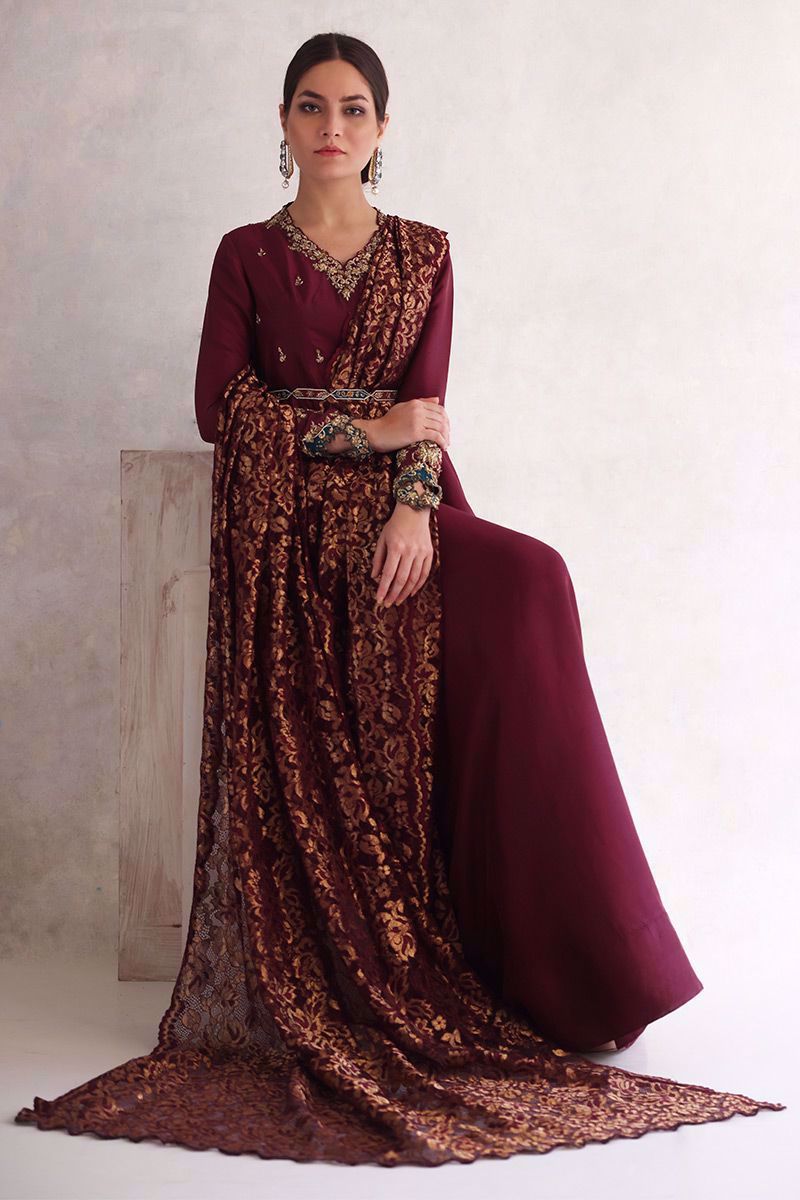 Color: Royal Plum And Gold Fabric: Chantilly Work Details: Embellishment