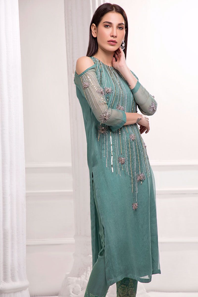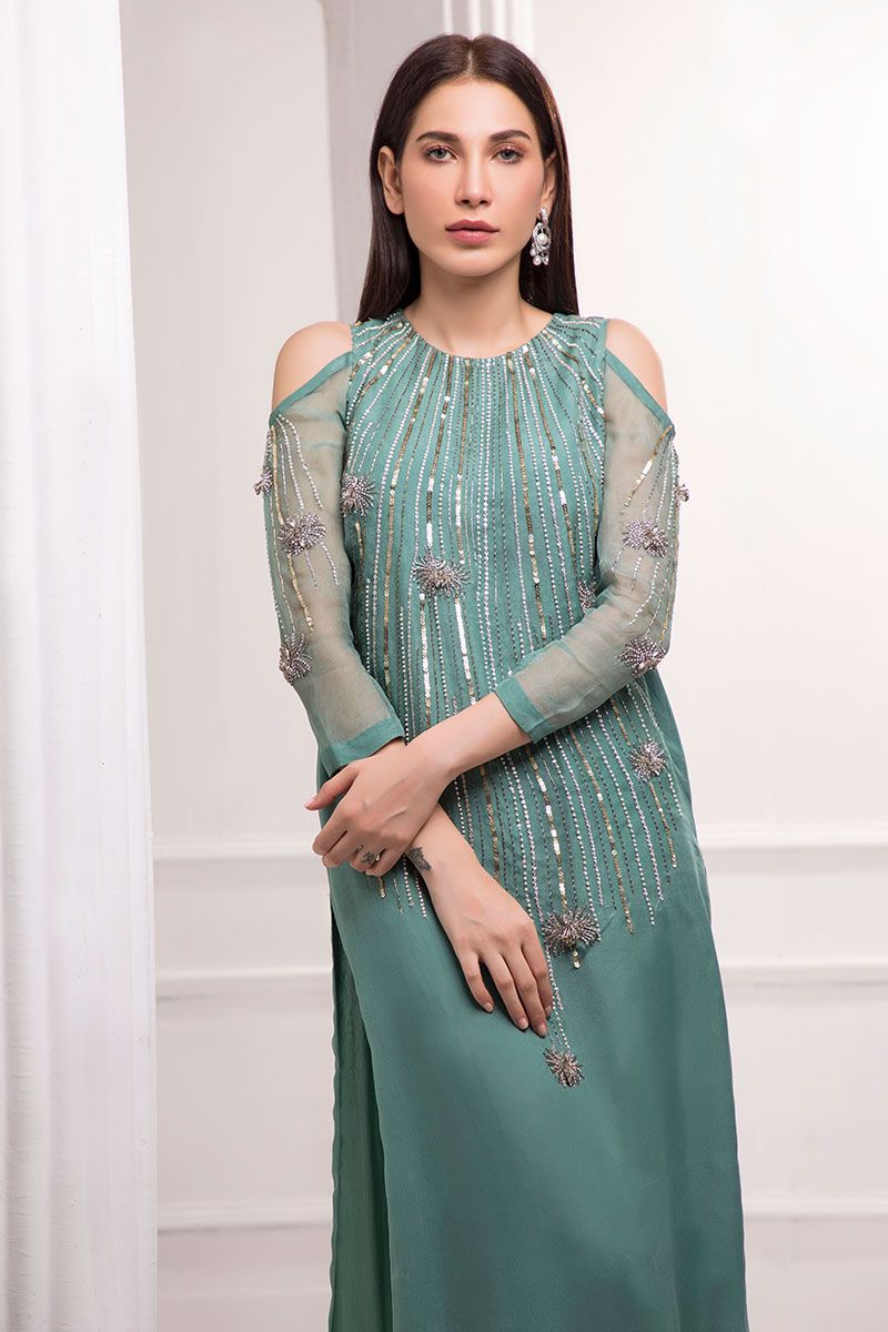 Color: Green Fabric: Organza Work Details: Handwork