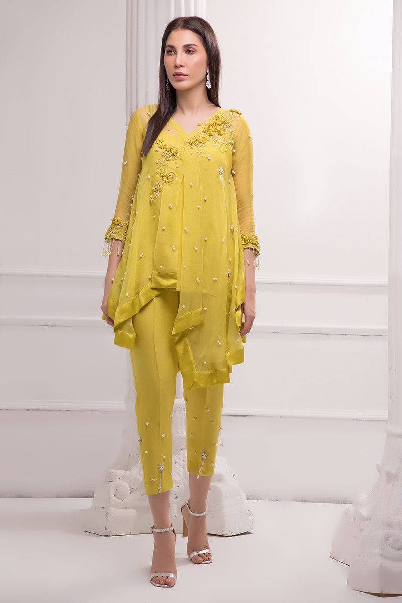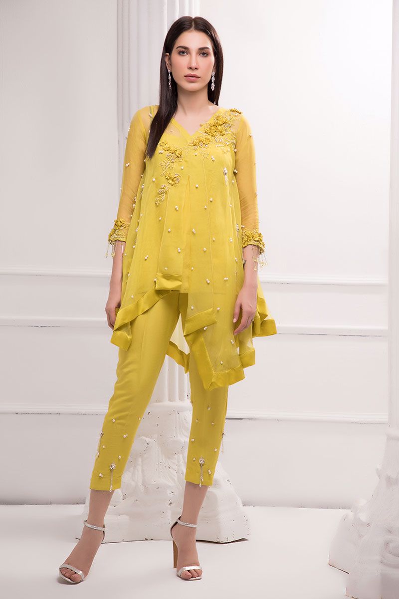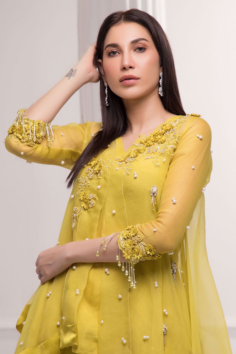 Color: Yellow Fabric: Organza Work Details: Handwork