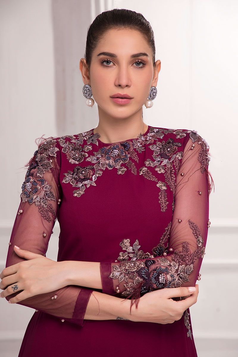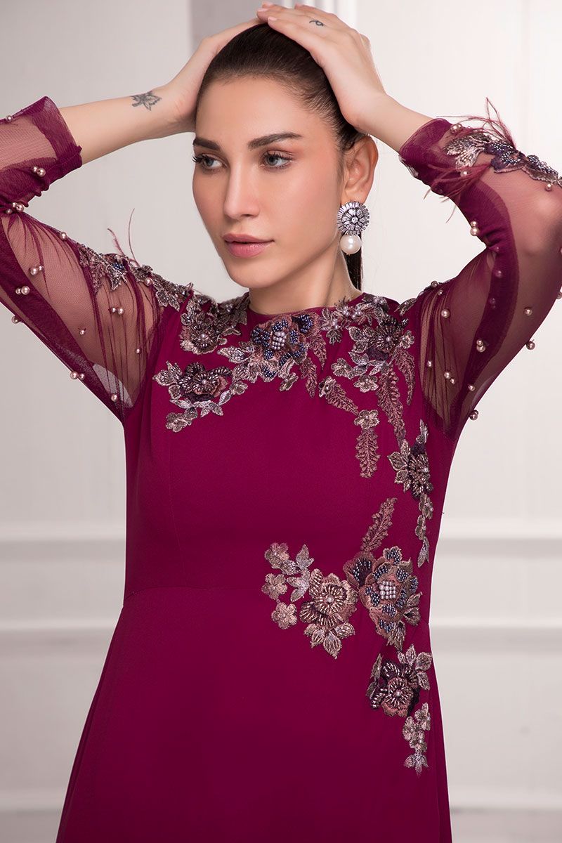 Color: Maroon Fabric: Georgette Work Details: Handwork