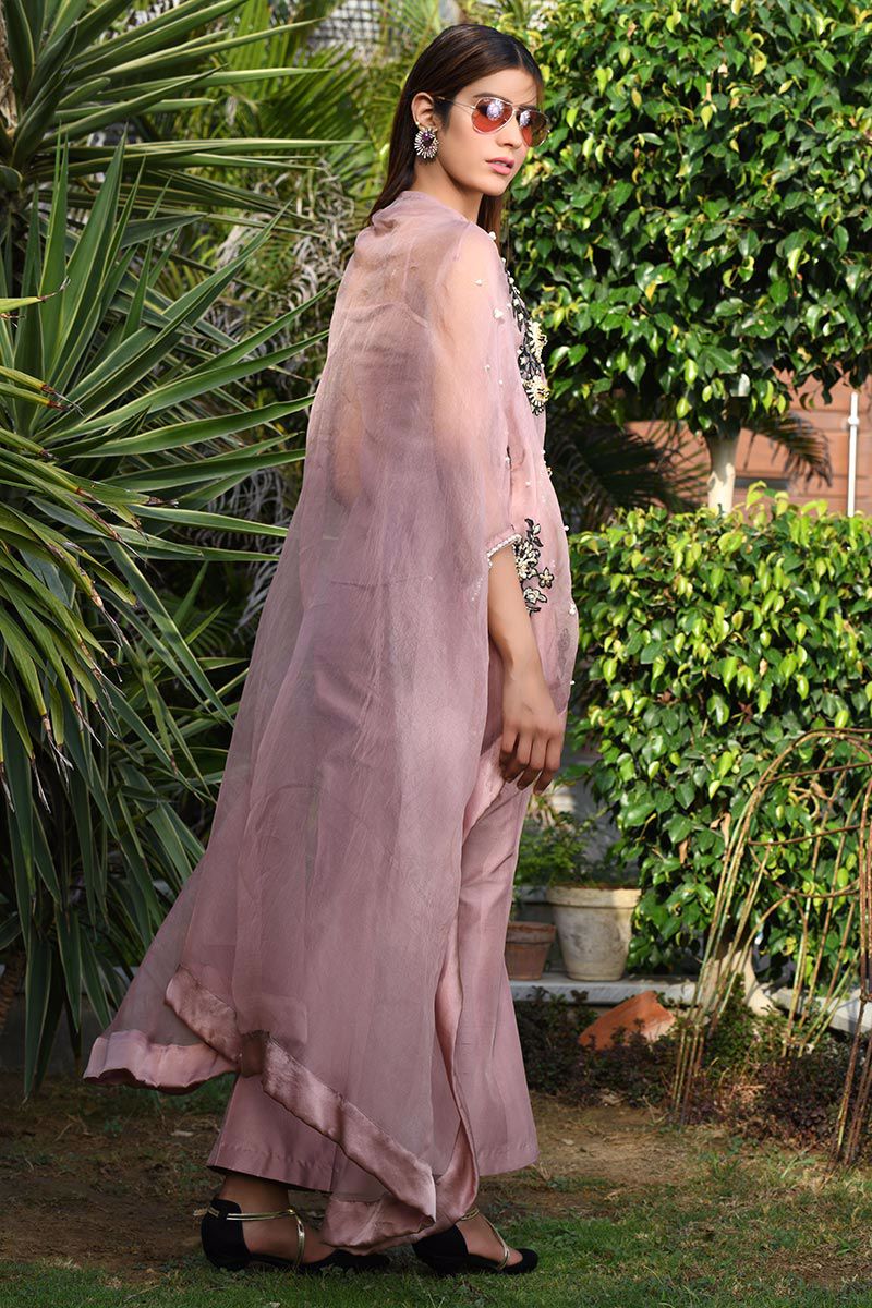 Color: Pink Fabric: Organza Work Details: Handwork