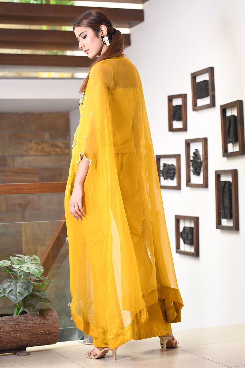 Color: Mustard Fabric: Organza Work Details: Handwork