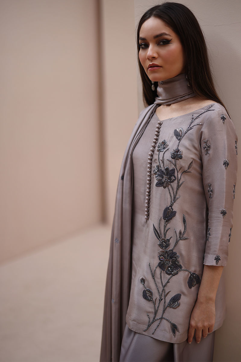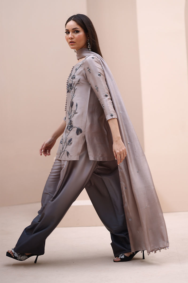 Fabric: Shirt: Pure Raw Silk, Shalwar: Ombre Silk and Dupatta: Pure Medium Silk