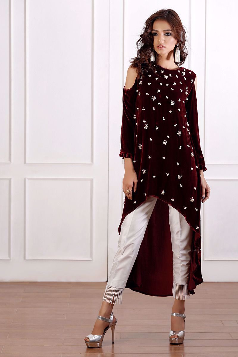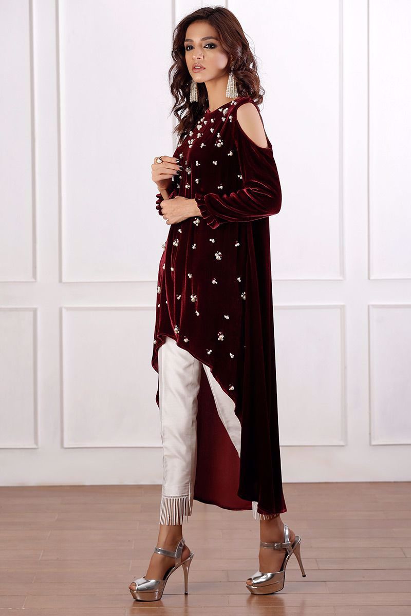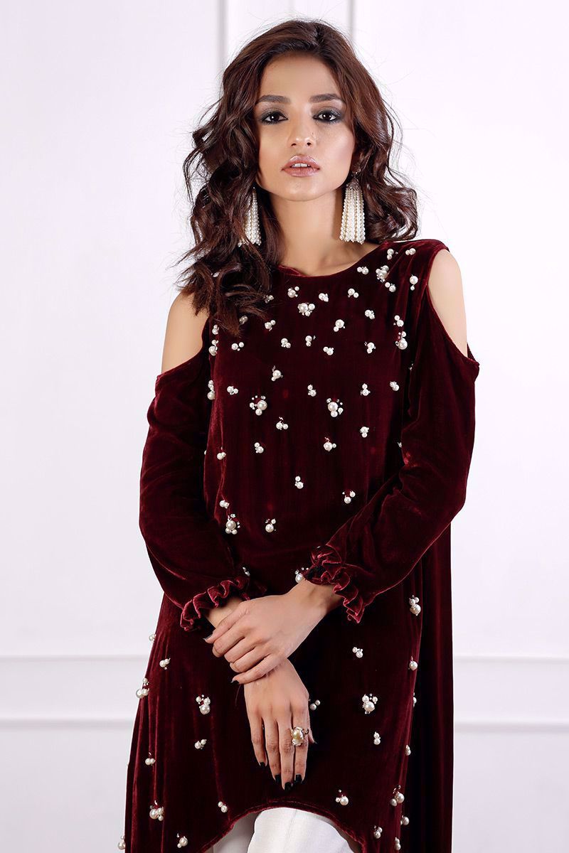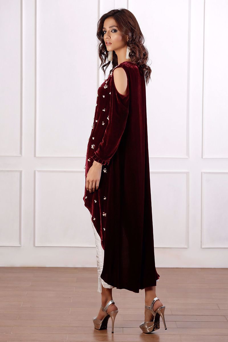 Color: Maroon Fabric: Velvet Work Details: Handwork