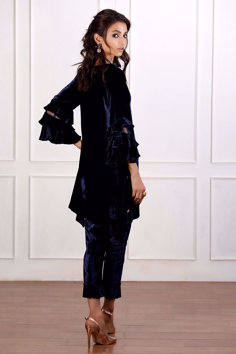 Color: Blue Fabric: Velvet Work Details: Handwork