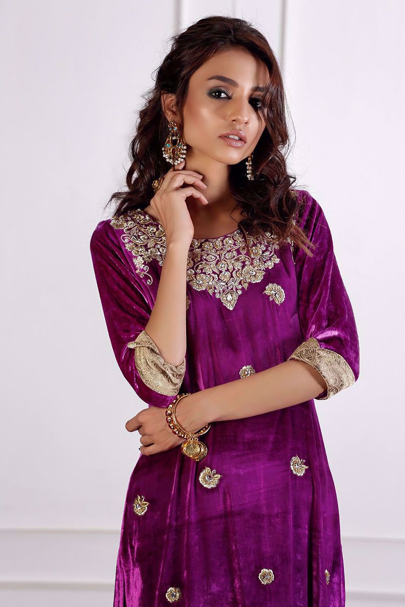 Color: Magenta Fabric: Velvet Work Details: Handwork