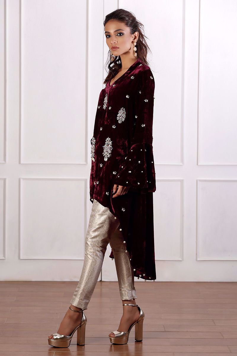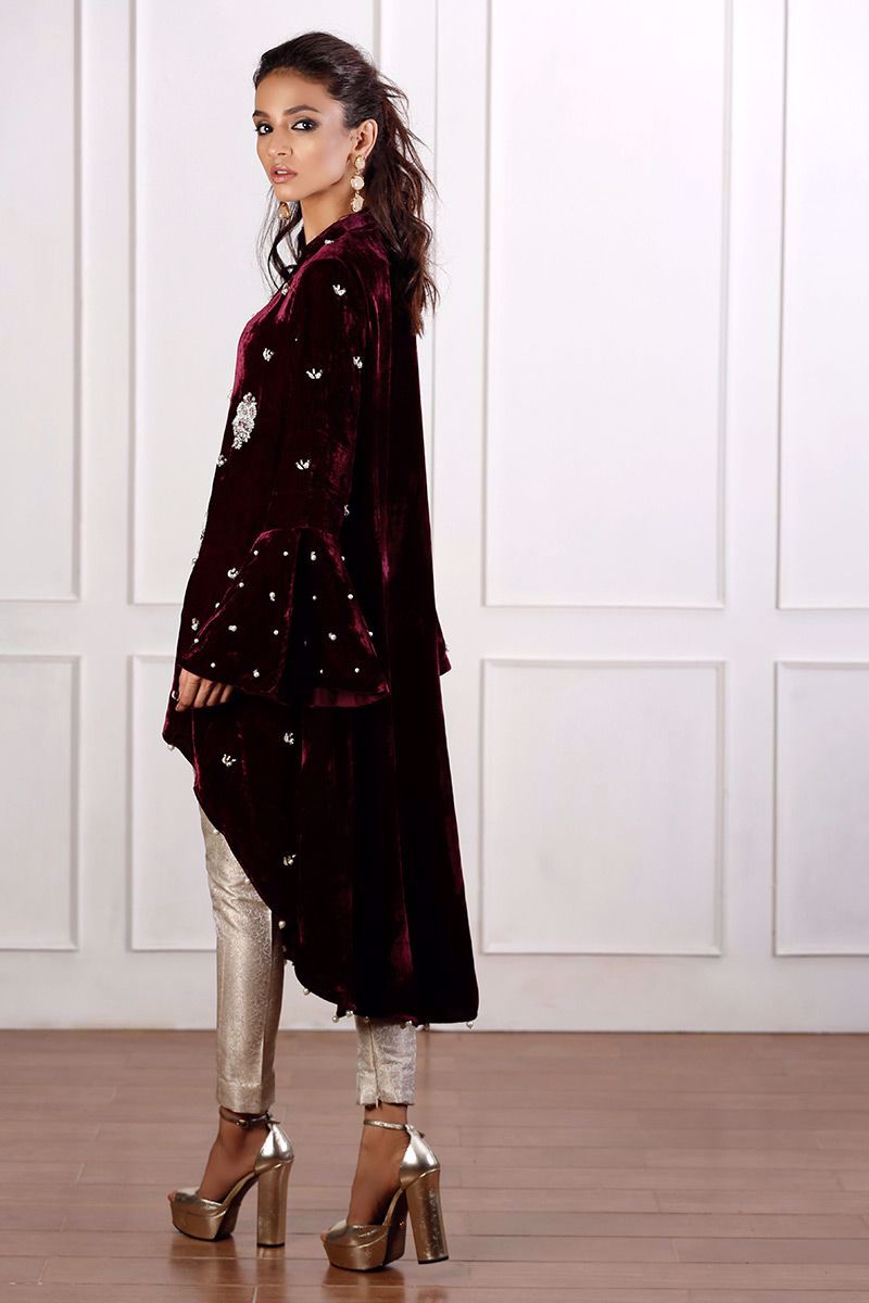 Color: Maroon Fabric: Velvet Work Details: Handwork
