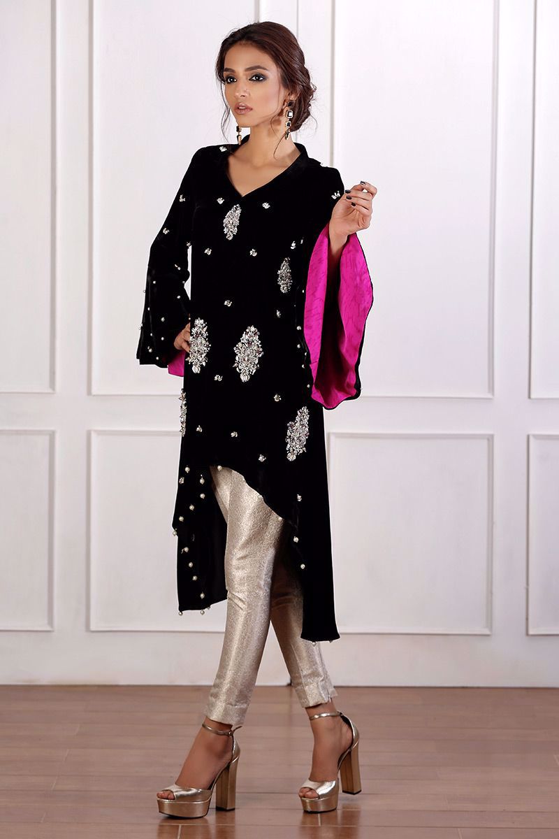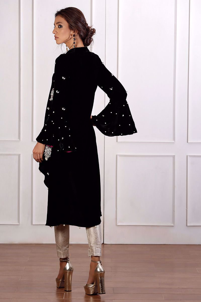 Color: Black Fabric: Velvet Work Details: Handwork