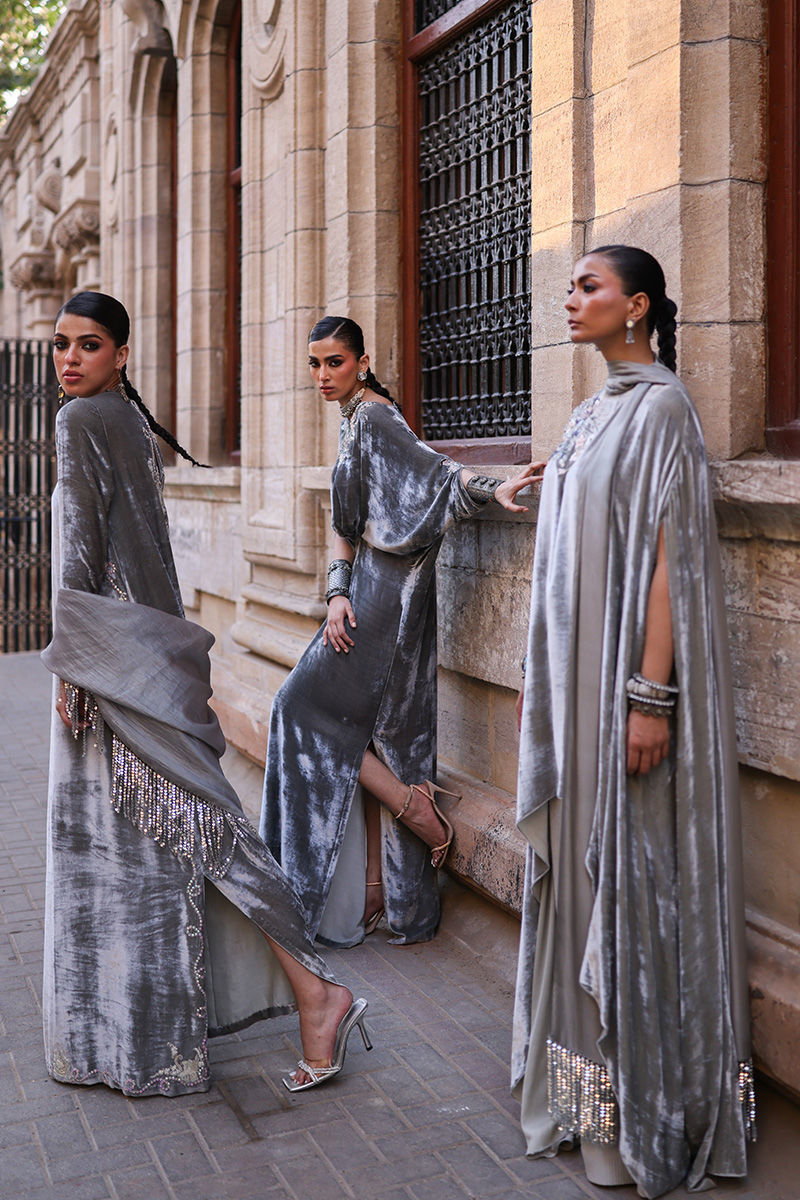 Color: Shadow Sage Fabric: Pure Velvet Work Details: Embroidered and Embellished