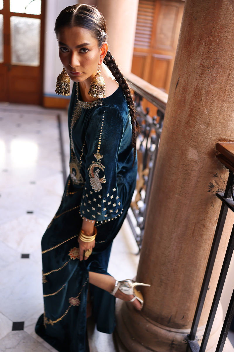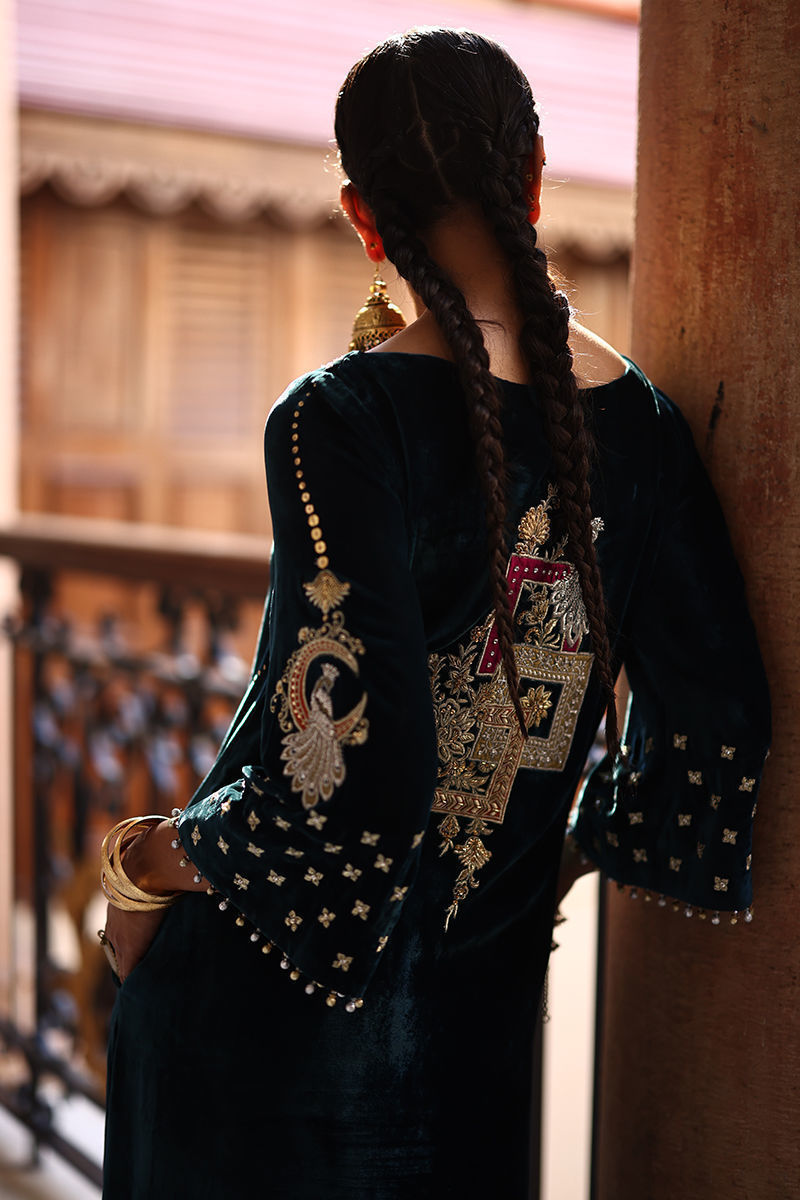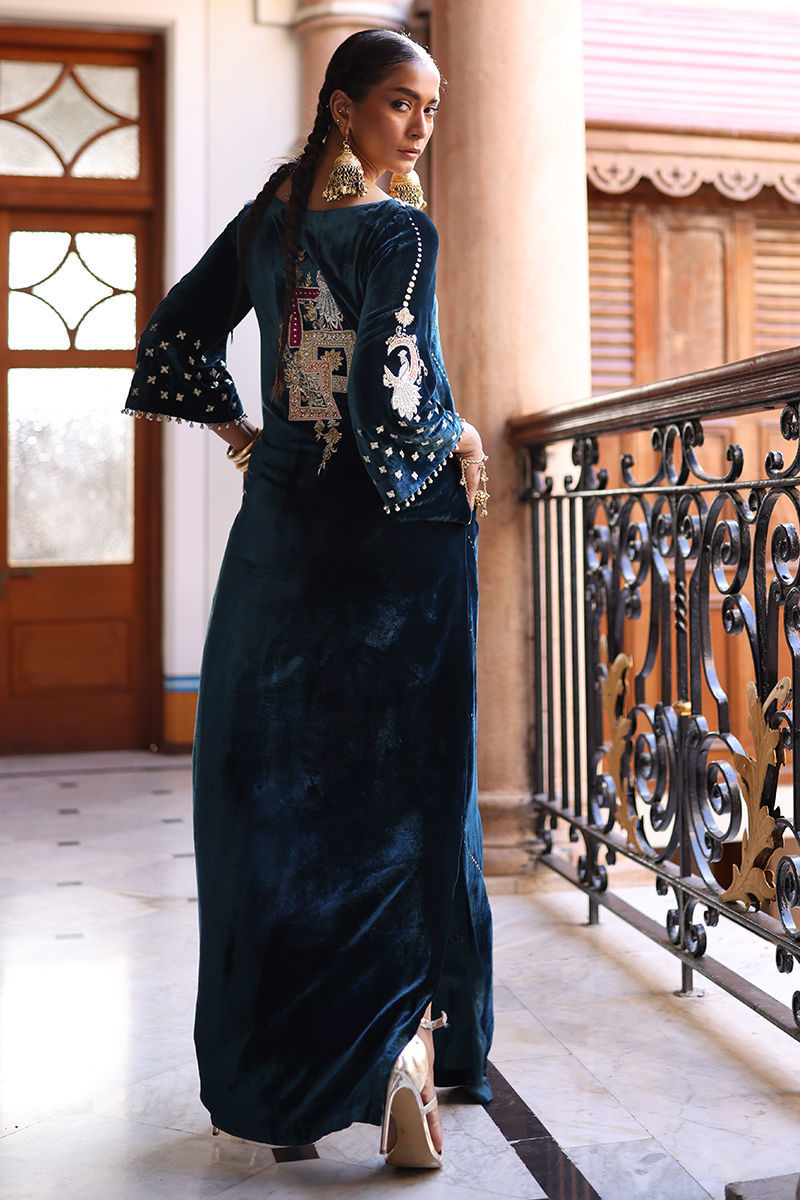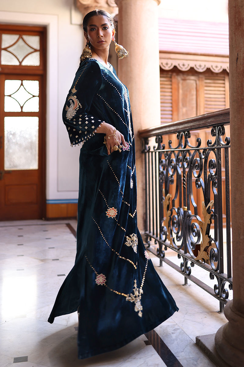 Color: Deep Lake Fabric: Pure Velvet Work Details: Embroidered and Embellished