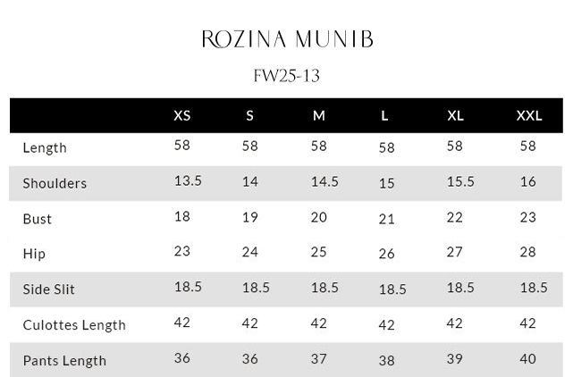 A statement kaftan crafted in luxurious pure velvet, designed with side pockets for a modern touch. The ensemble features exquisite gold and silver zari embroidery with colored appliqué work, beautifully enhanced by intricate handwork of sequins, cutdana, dabka, naqshi, tikki, and stones on the front, back, and sleeves. Delicate gota ball detailing along the sleeve edges adds a playful yet elegant finish. Paired with cotton charmeuse culottes or pants, this Deep Lake ensemble is a perfect blend of contemporary charm and timeless craftsmanship.