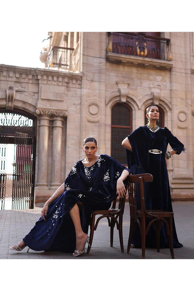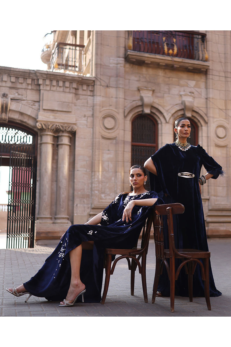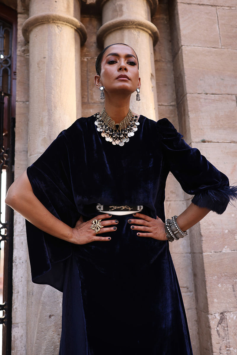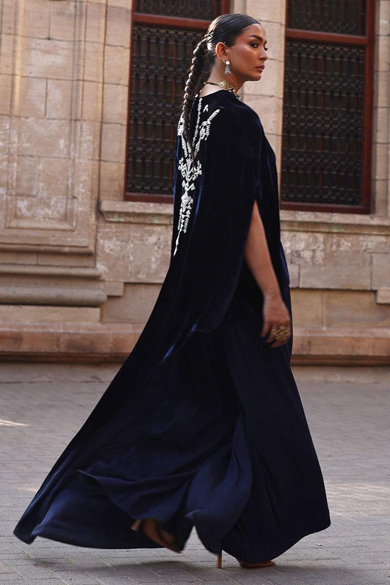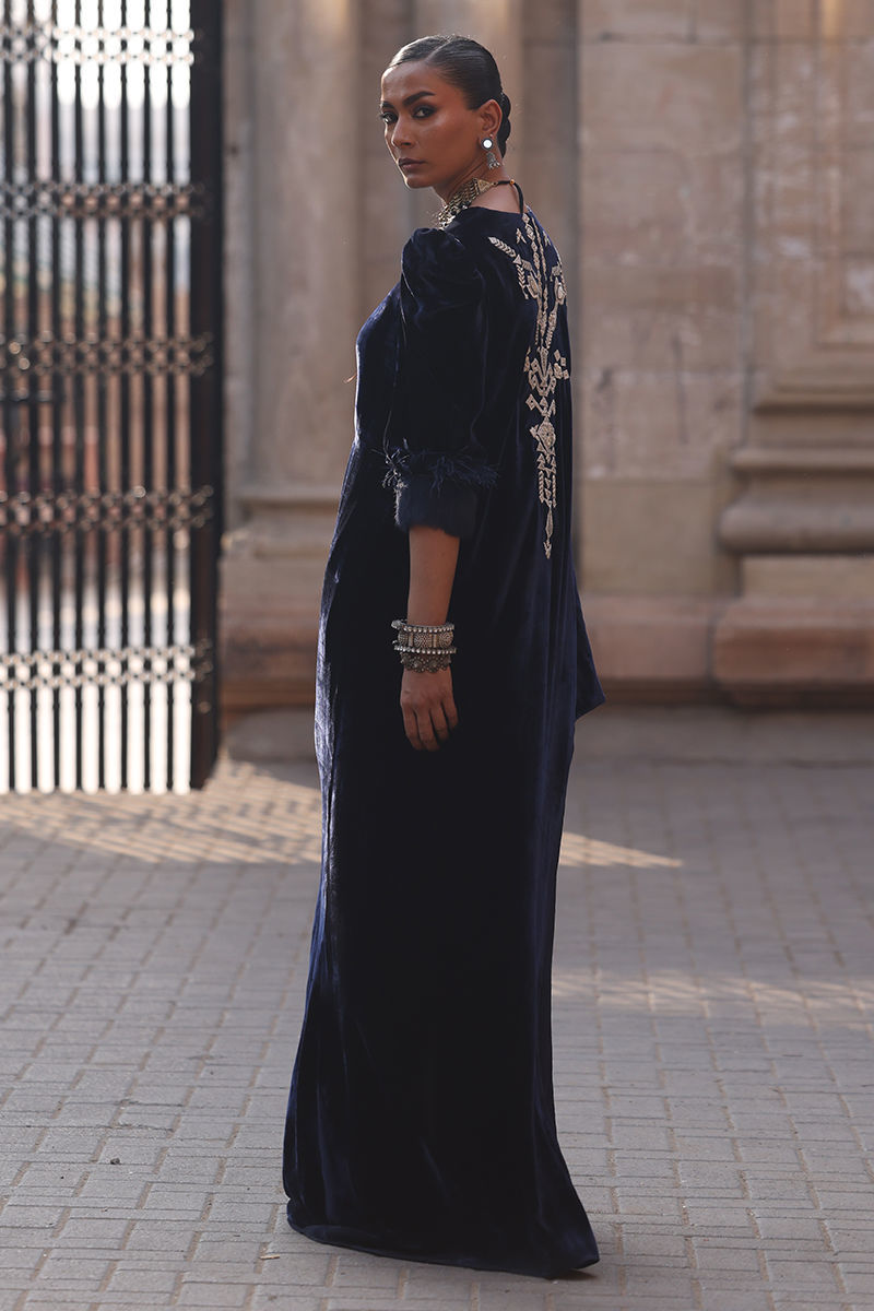 Color: Deep Blue Fabric: Pure Velvet Work Details: Embroidered and Embellished