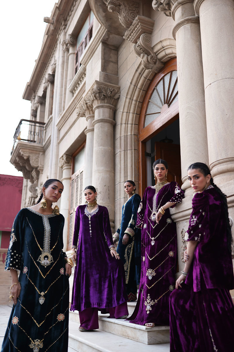 Color: Magenta Haze Fabric: Pure Velvet Work Details: Embroidered and Embellished