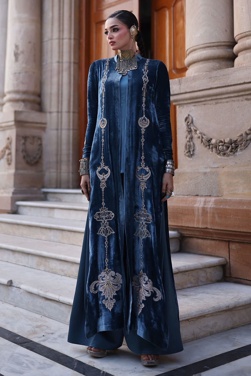 Color: Copen Blue Fabric: Pure Velvet Work Details: Embroidered and Embellished