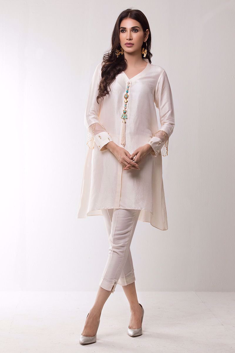 Same colored Dupatta with trendy hangings and embellished Pants can be additionally bought to complete the look.