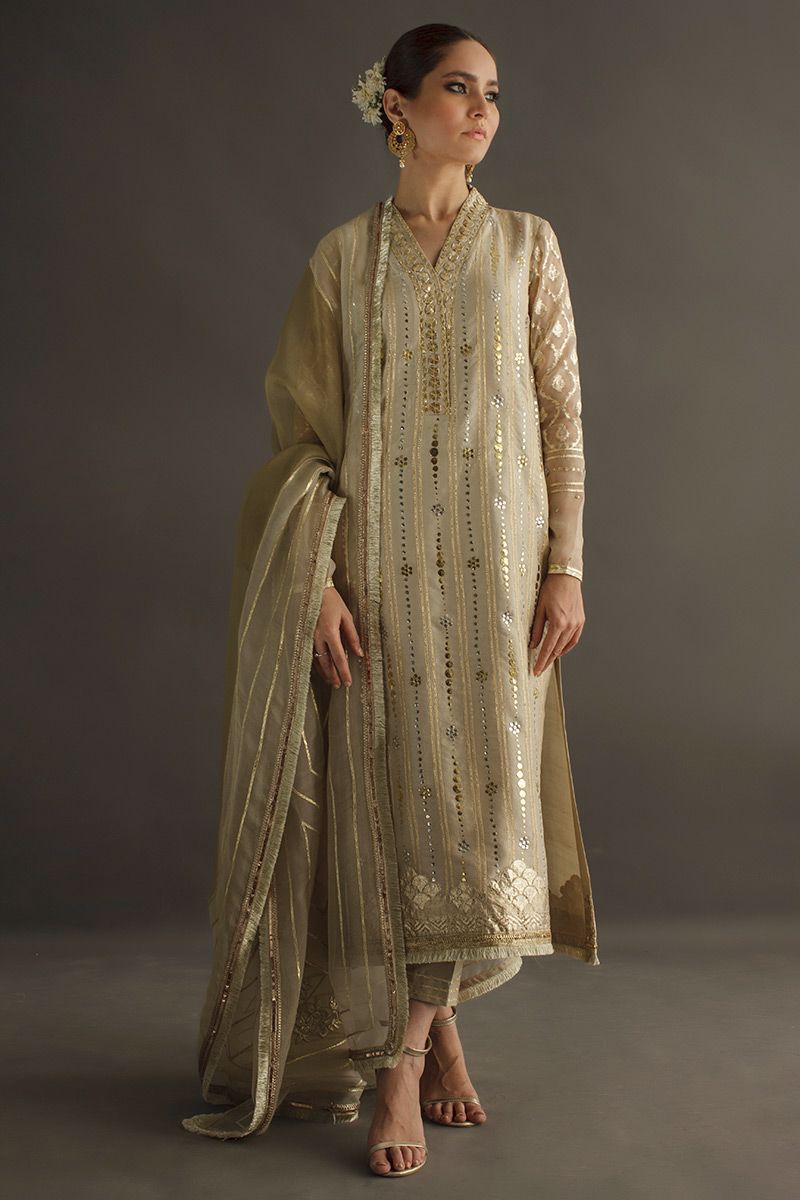 Color: Ashwood Fabric: Raw Silk Work Details: Embellished