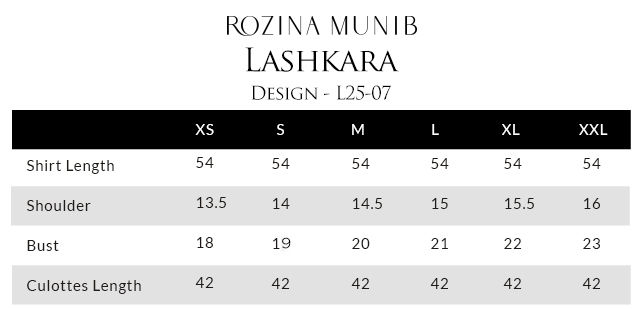 This elegant deep blue ensemble in pure 80gms raw silk features a straight long shirt, richly decorated with light and dark gold zari embroidery, antique lame, and intricate zardozi work including kora, dabka, cutdana, stones, pearls, nakshi, sequins, and delicate silver bird motifs across the front and sleeves. It is paired with matching culottes, finished with sequins at the hem for a subtle sparkle. Completing the look are three dupatta options: a gold lame dupatta with four-sided zari embroidery, handworked borders, and banarsi detailing; a pure organza dupatta with zari embroidered scallops, sequined handwork border, and chan; and a pure medium silk dupatta with a classic four-sided gold border.