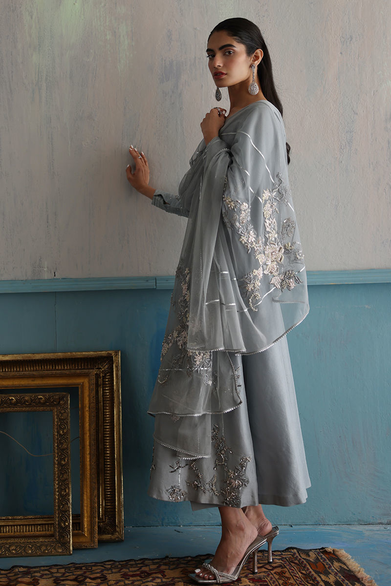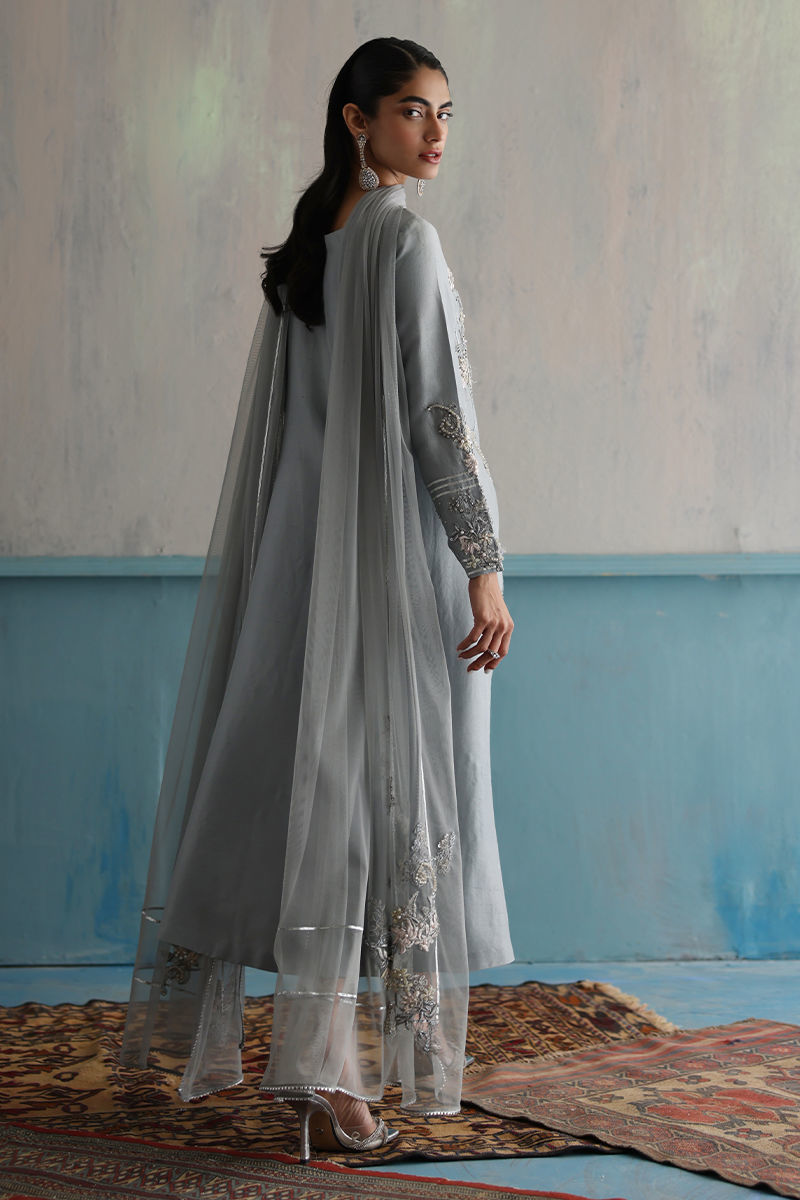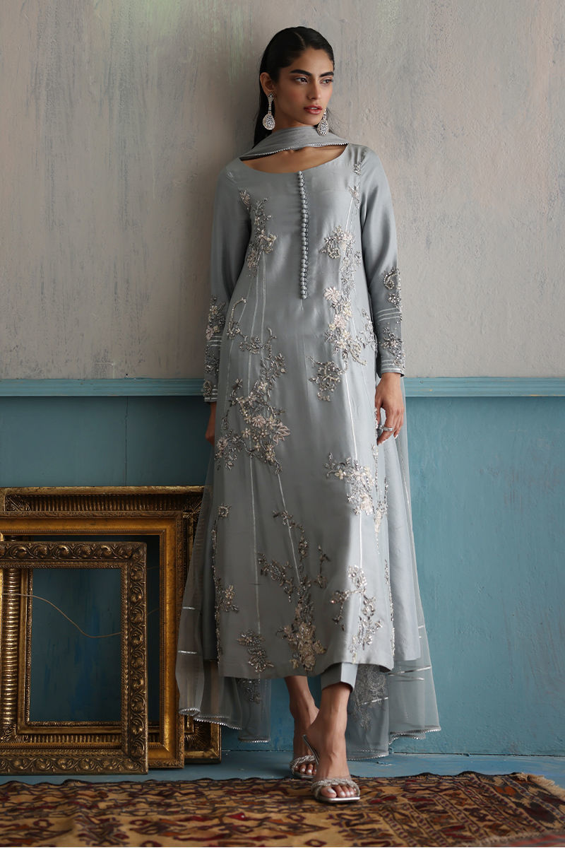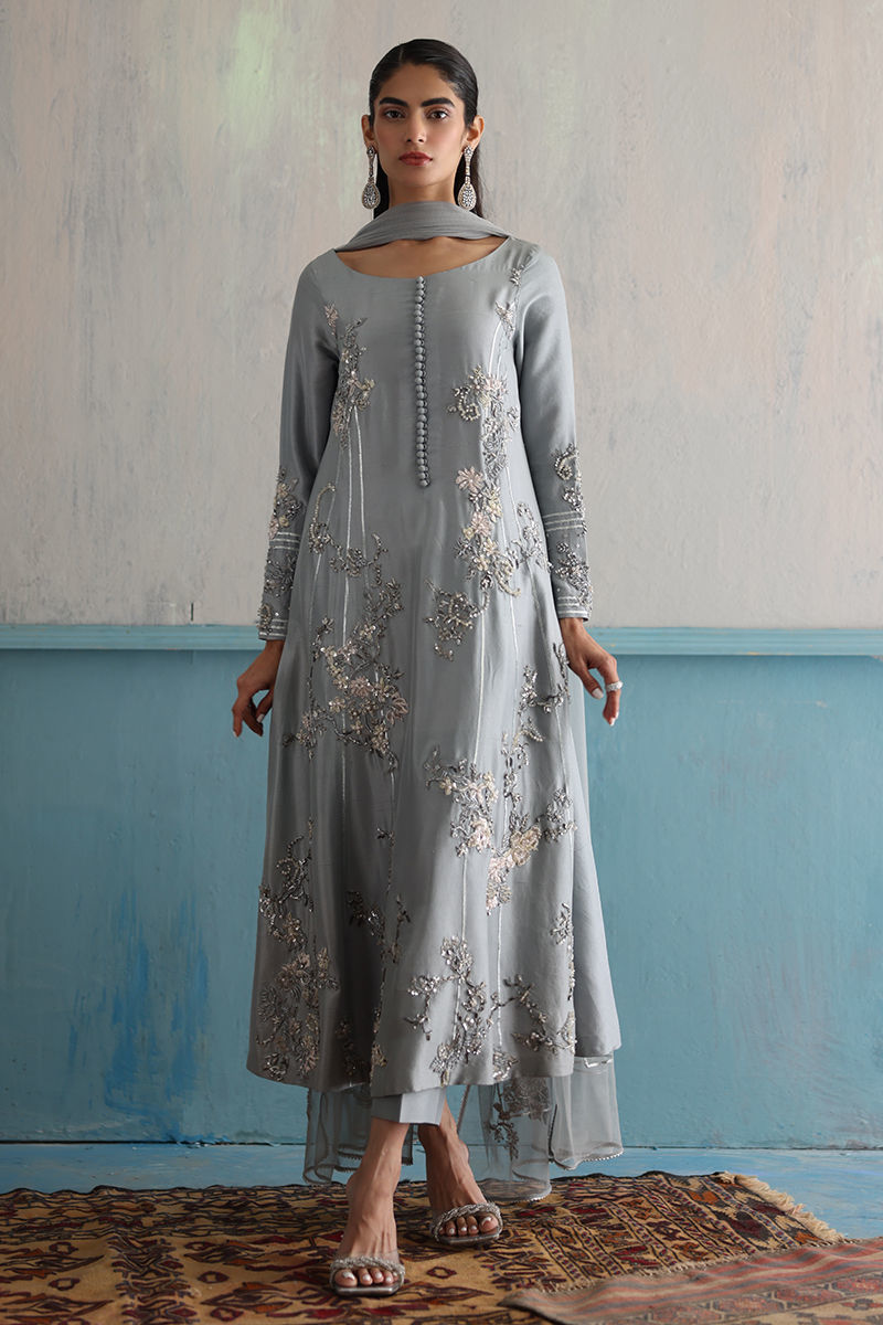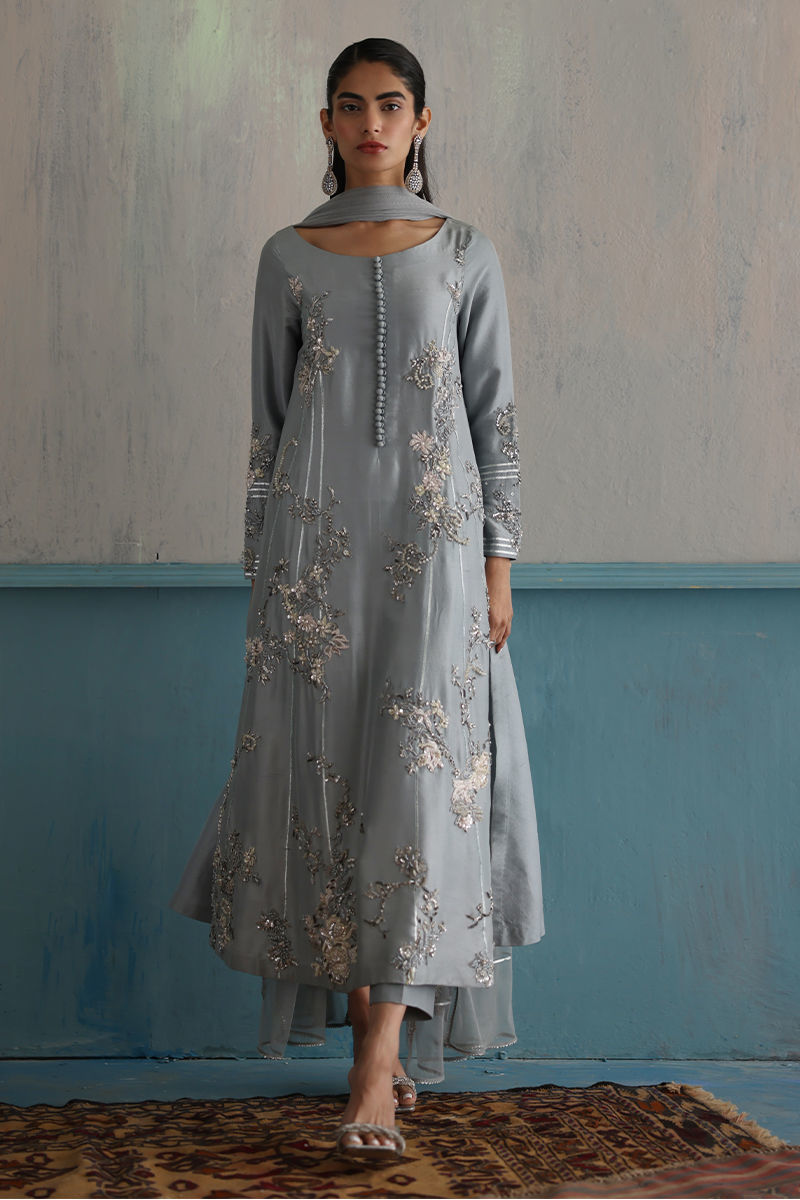 Indulge in luxury with the "Pastel Flair Royalty Shirt," meticulously tailored from pure 80 gms raw silk. The prince panel flare shirt design adds an element of regal elegance. The shirt is adorned with exquisite embroidery all over the front and sleeves, featuring a pastel combination of resham, pearls, crystals, cutdana, sequins, and tiki stones. This harmonious blend of embellishments creates a symphony of texture and color that reflects the elegance of royalty. Complementing the shirt with shimmer silk straight pants or pure raw silk straight pants.