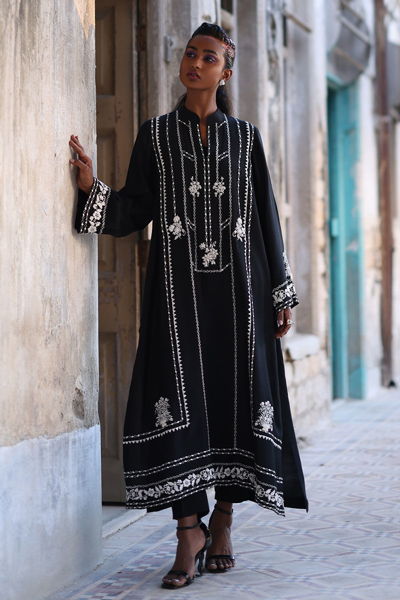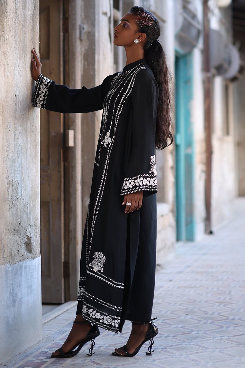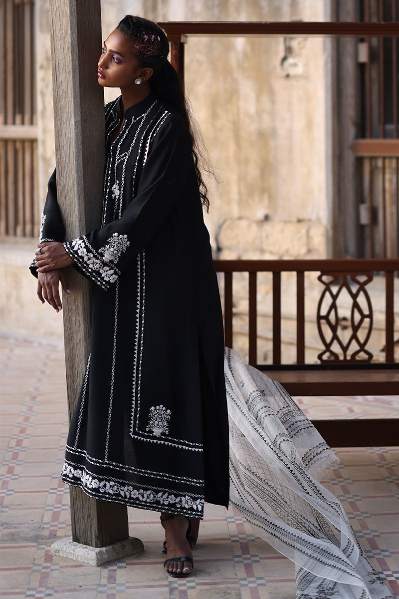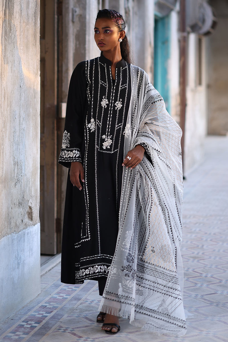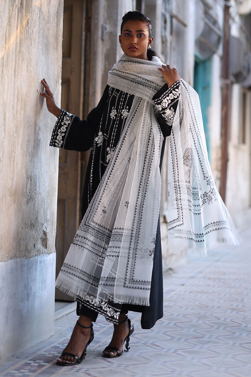 Get ready to elevate your style game with this fit, the shirt is made from high-quality cotton net in a lovely black shade, and is intricately detailed with resham, zari, beads, and stones. The straight shirt is designed to flatter your figure, while the detailed work adds an extra element of elegance. Complete the look with the pants are made from soft viscose and organza dupatta with a screen print.