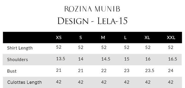 The model's shirt length is 52 and culottes length is 42.