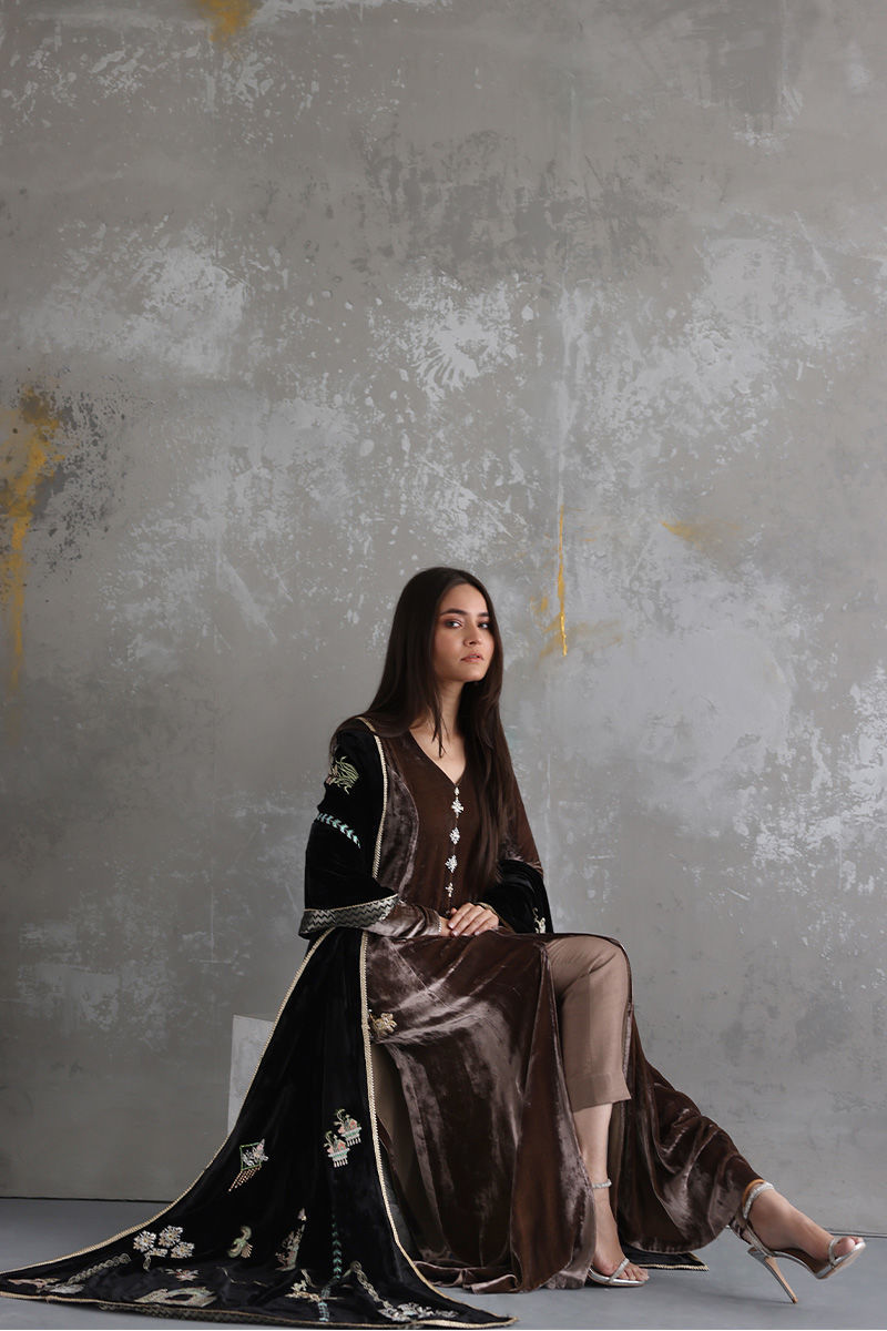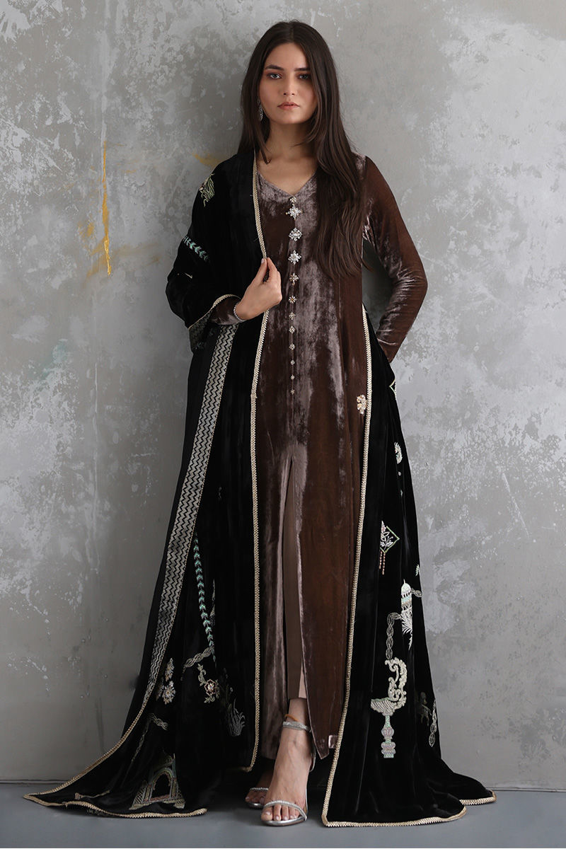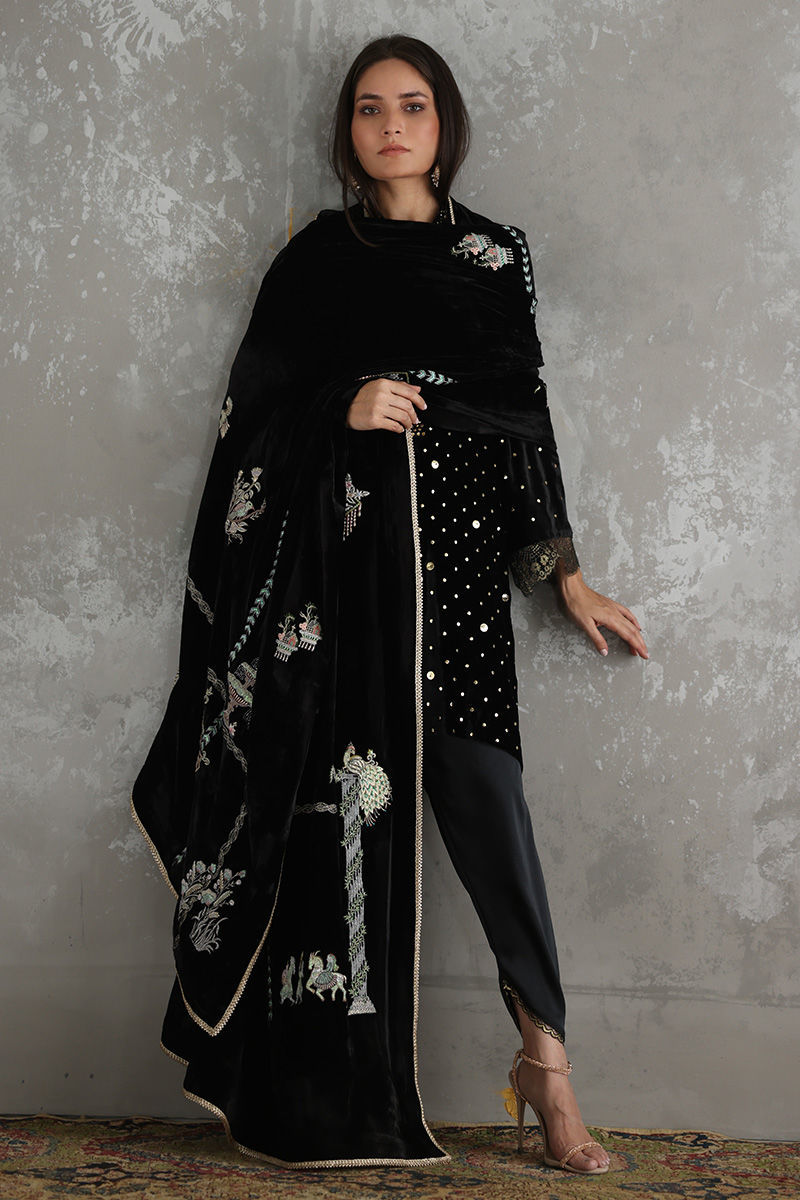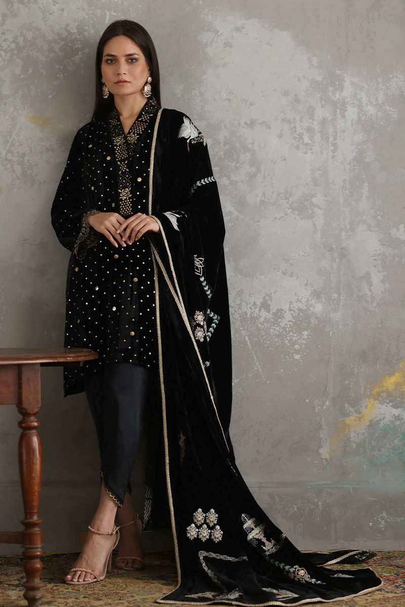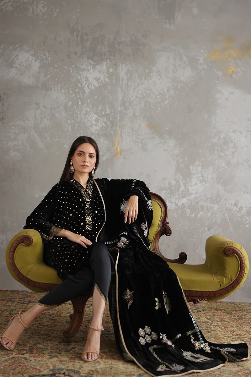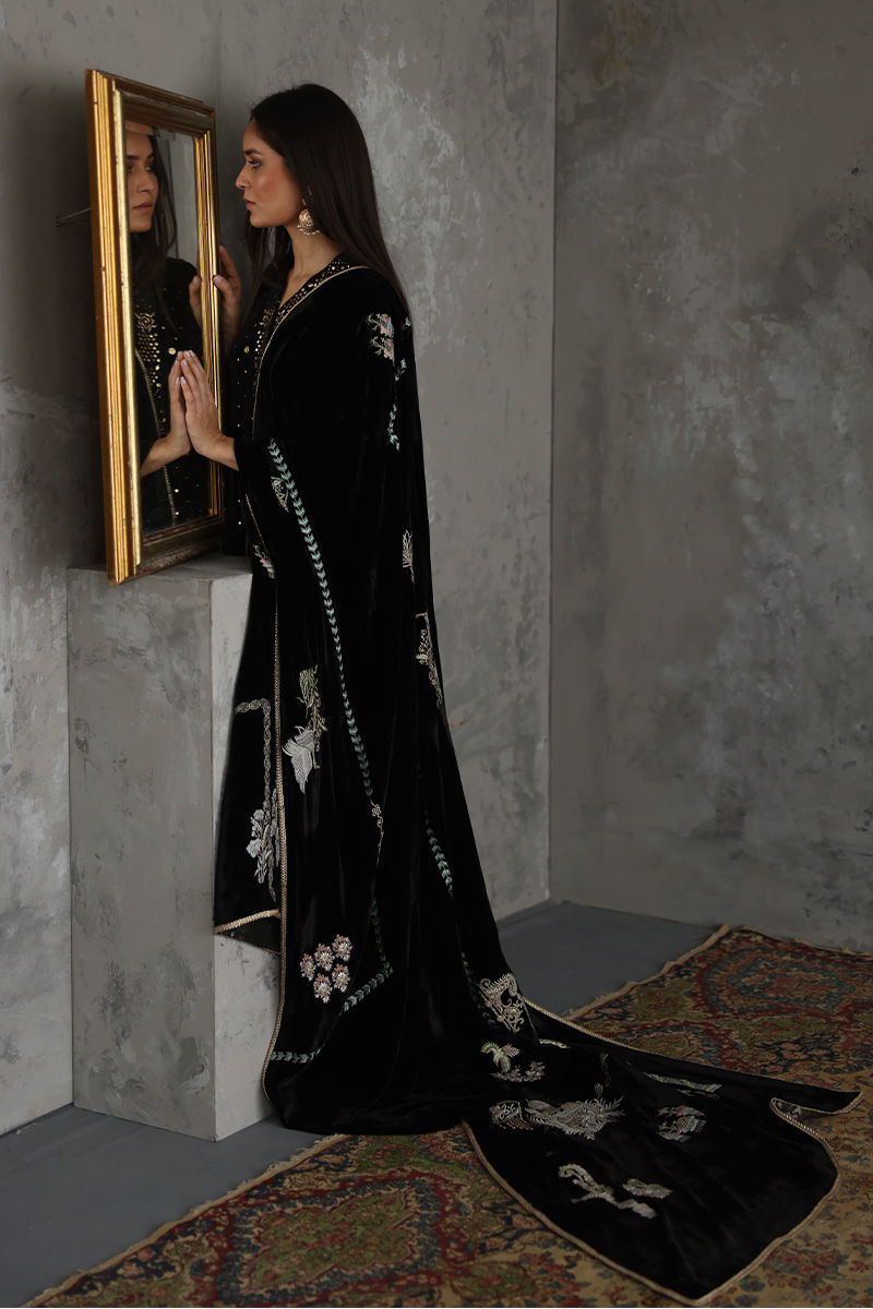 Color: Black Fabric: Velvet Work Details: Embellished