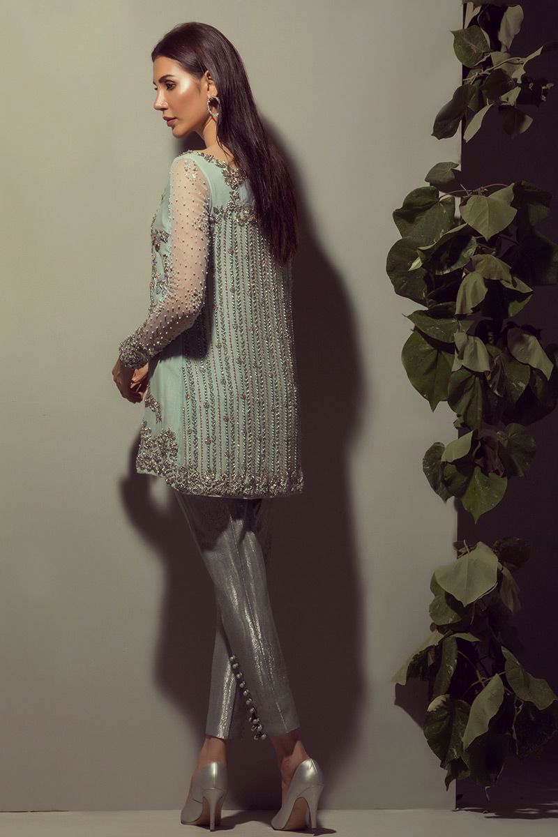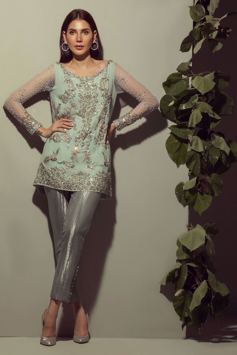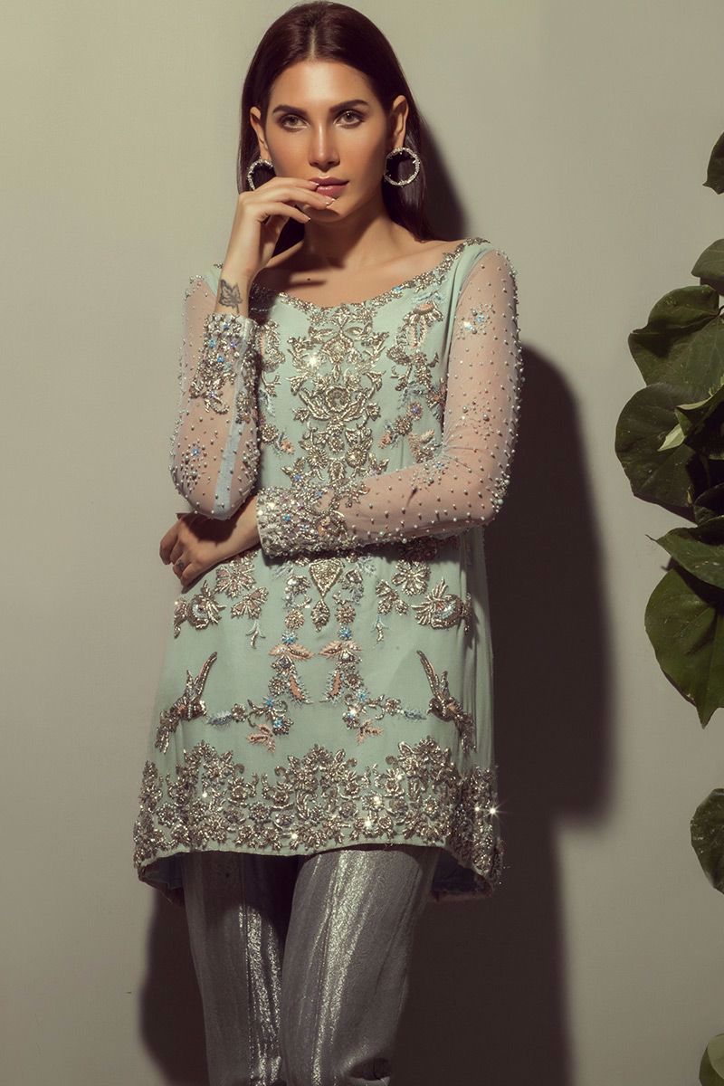 Pure georgette Shirt hand worked with zardozi, crystals, stones, resham and many more paired with jamawar banarsi pants.