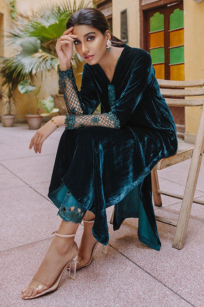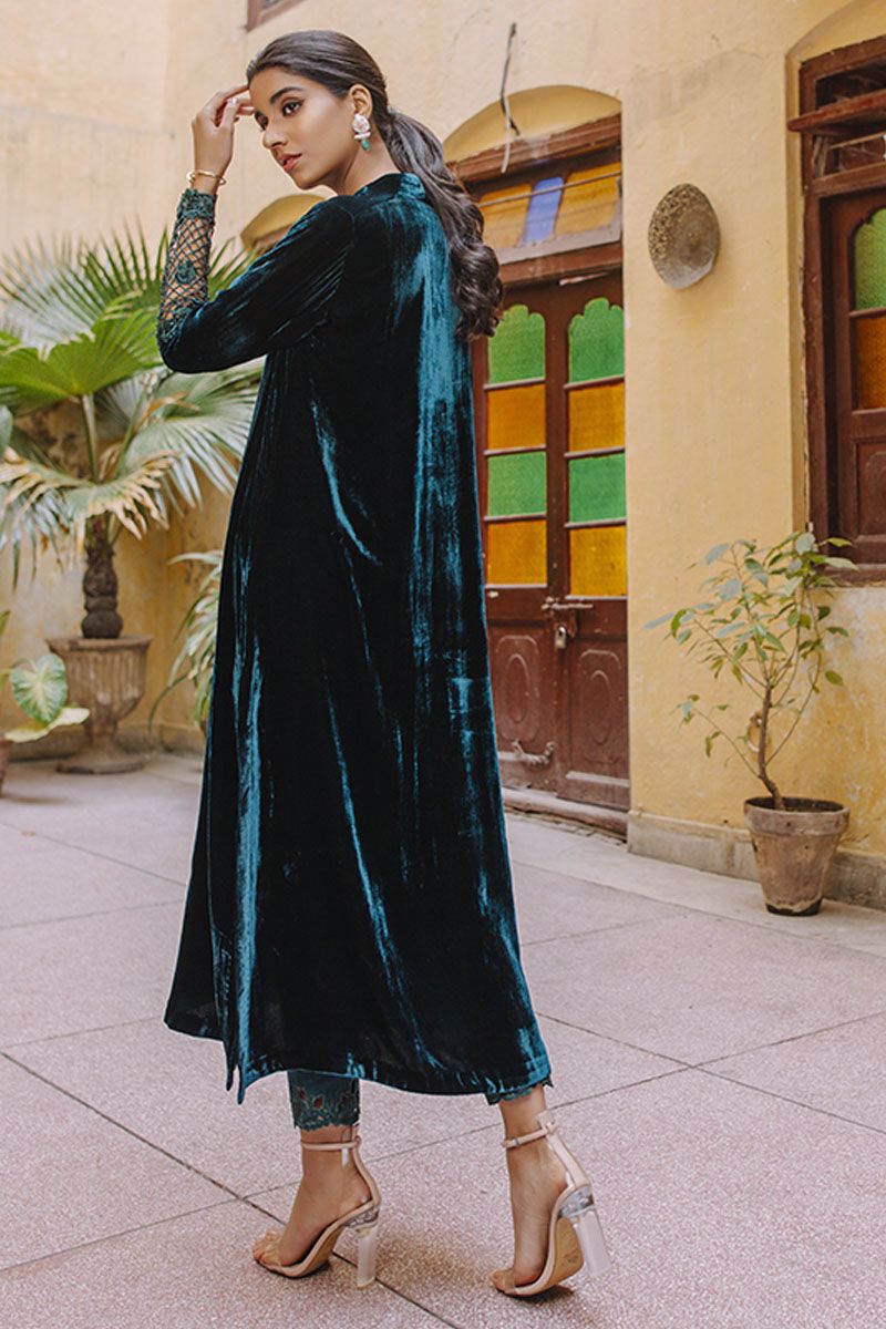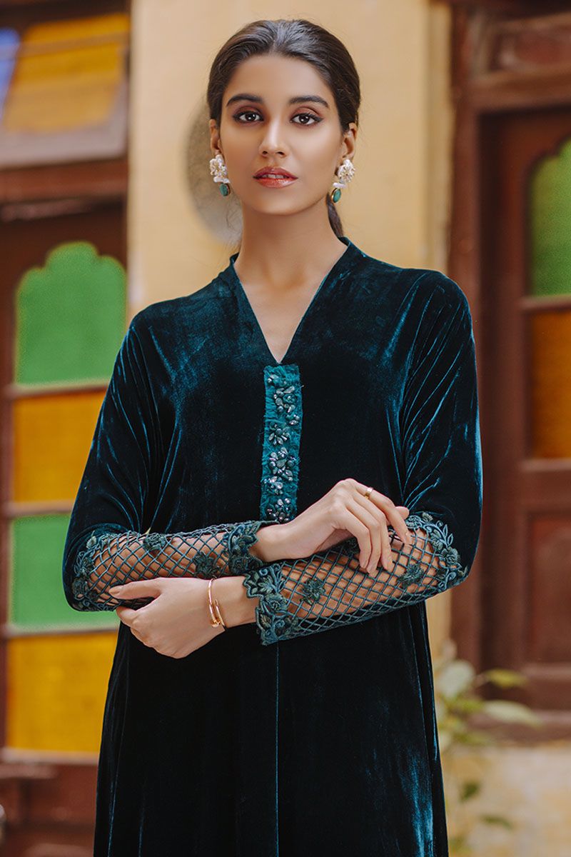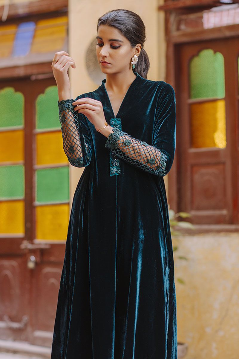 Color: Bottle Green and Brown Fabric: Velvet Work Details: Embellished