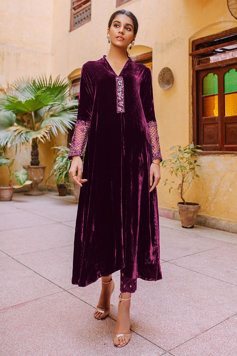 Color: Plum Bottle Green and Brown Fabric: Velvet Work Details: Embellished