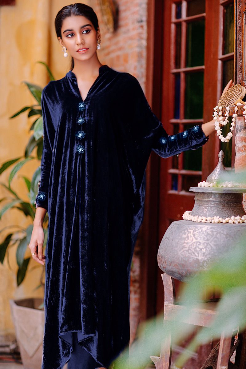 Color: Navy Blue and Taupe Fabric: Velvet Work Details: Embellished