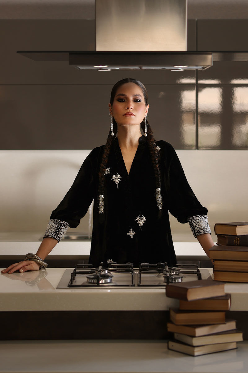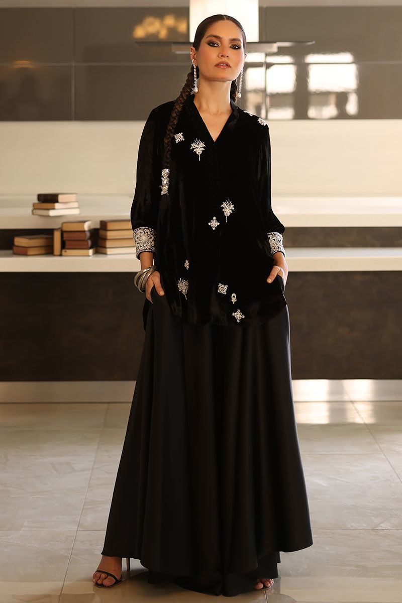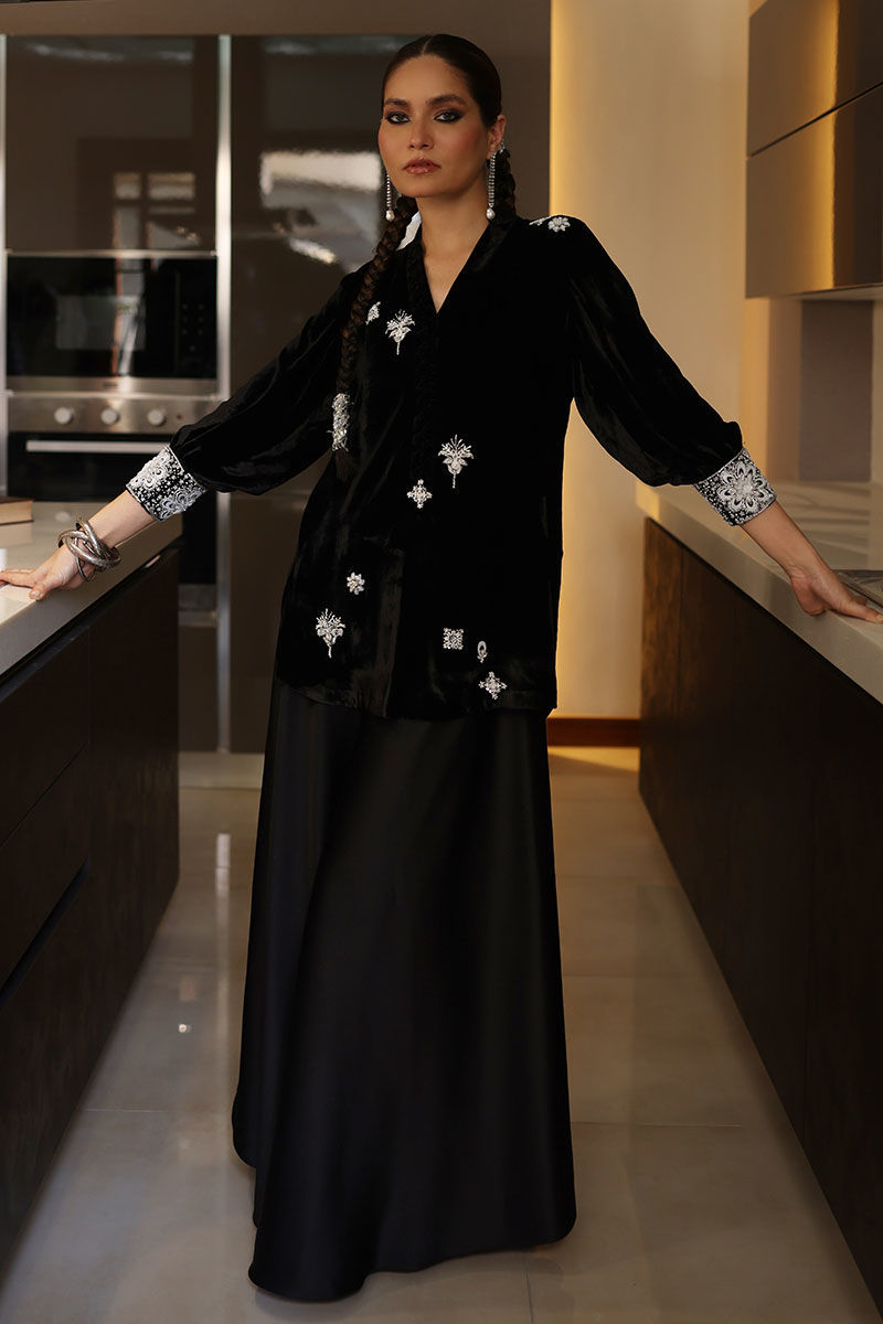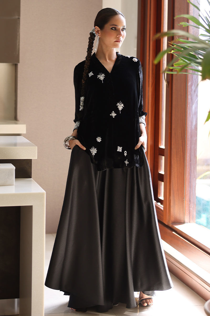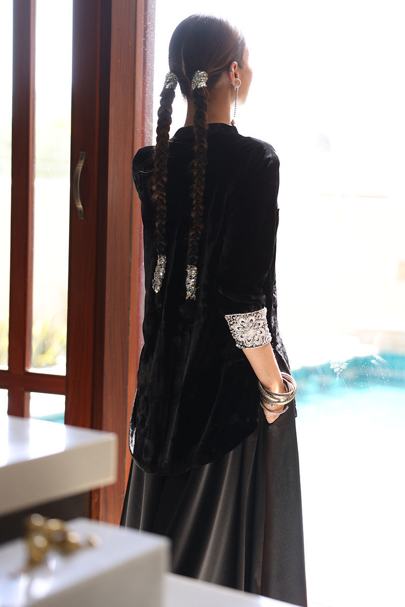 Color: Black Fabric: Pure Silk Velvet Work Details: Embellished
