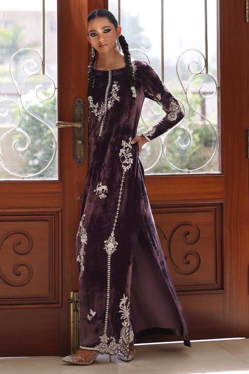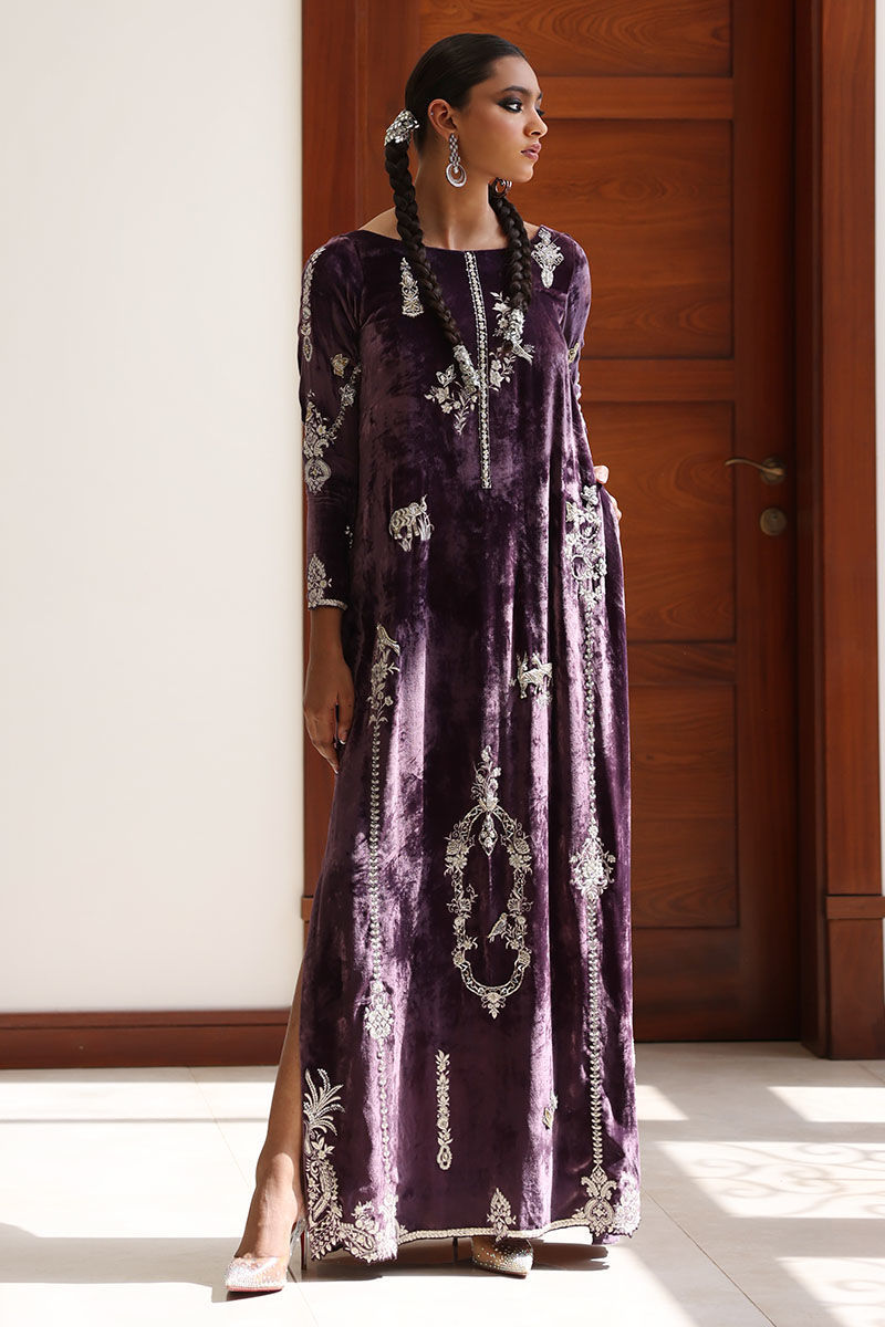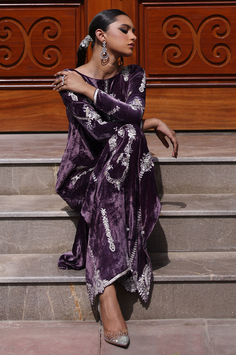 Color: Lavender Aura Fabric: Pure Silk Velvet Work Details: Embellished
