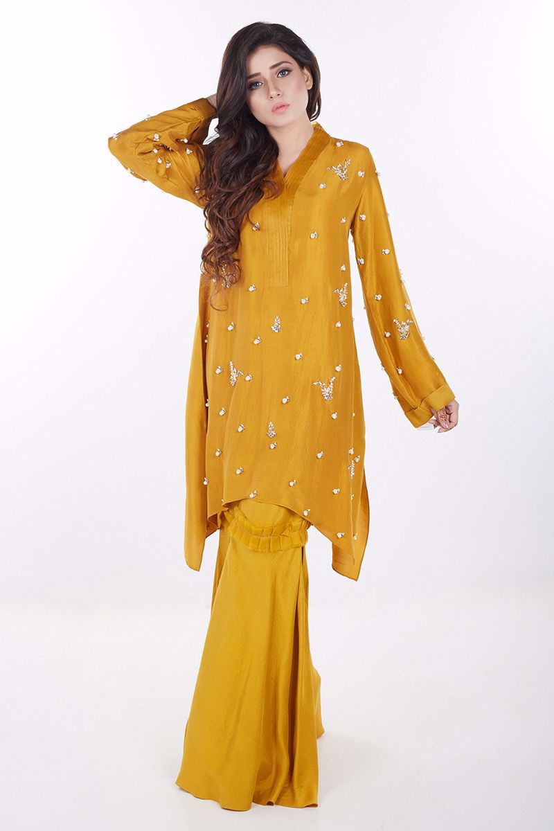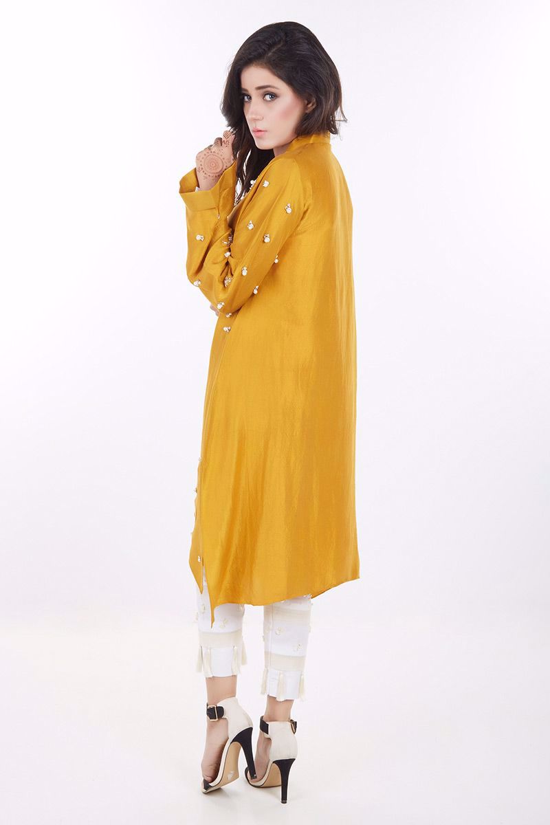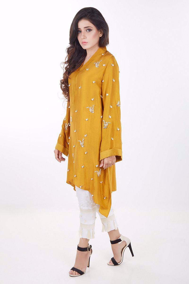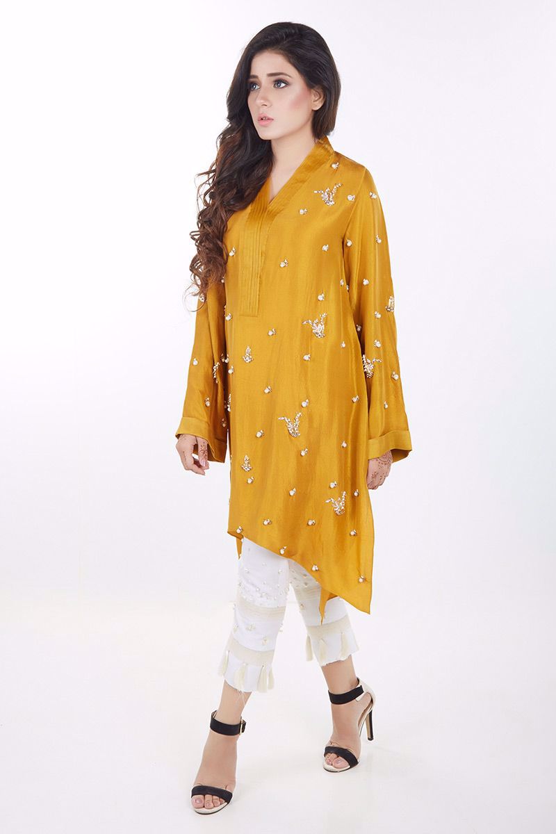 Mustard Pink pure raw silk hand worked Top.