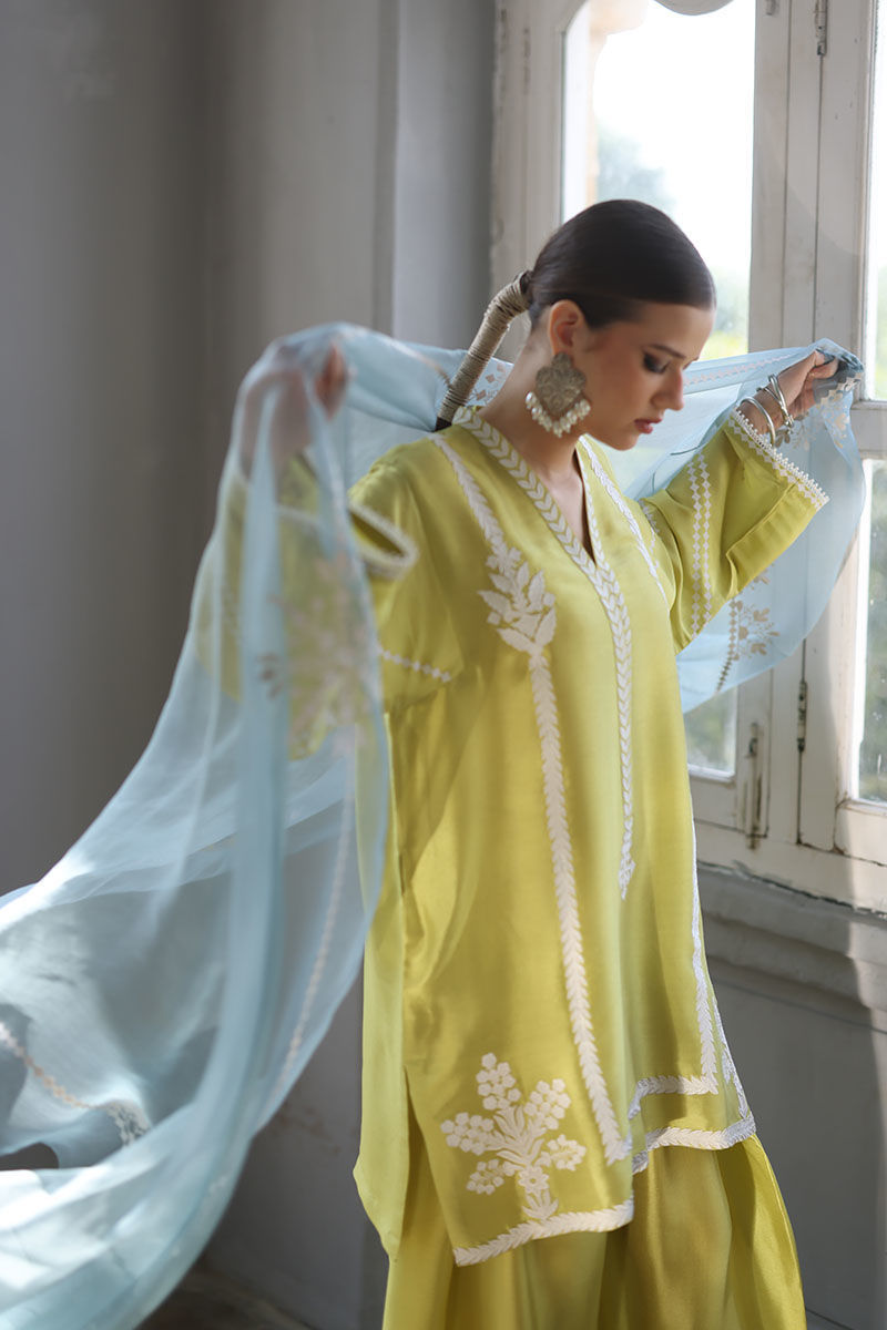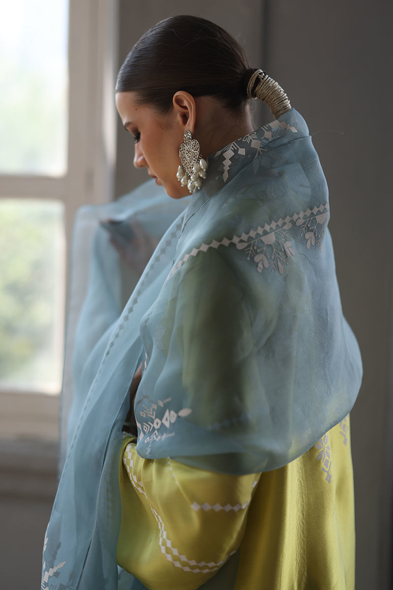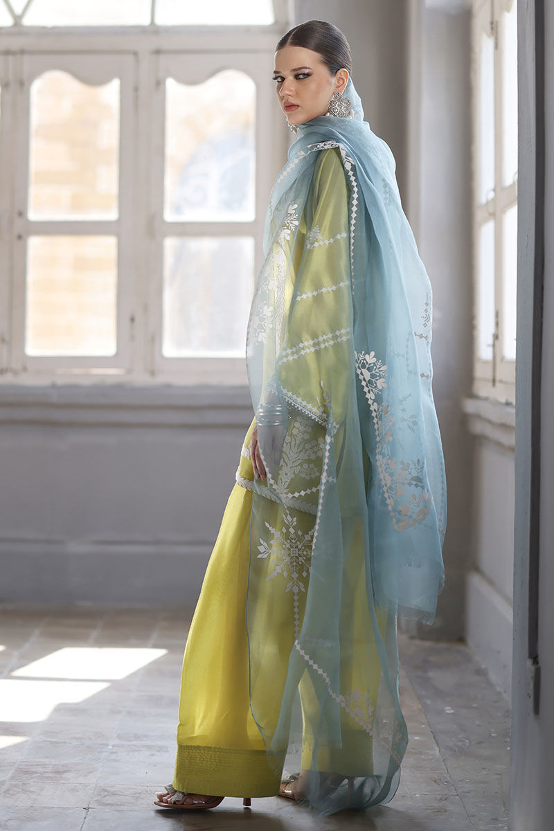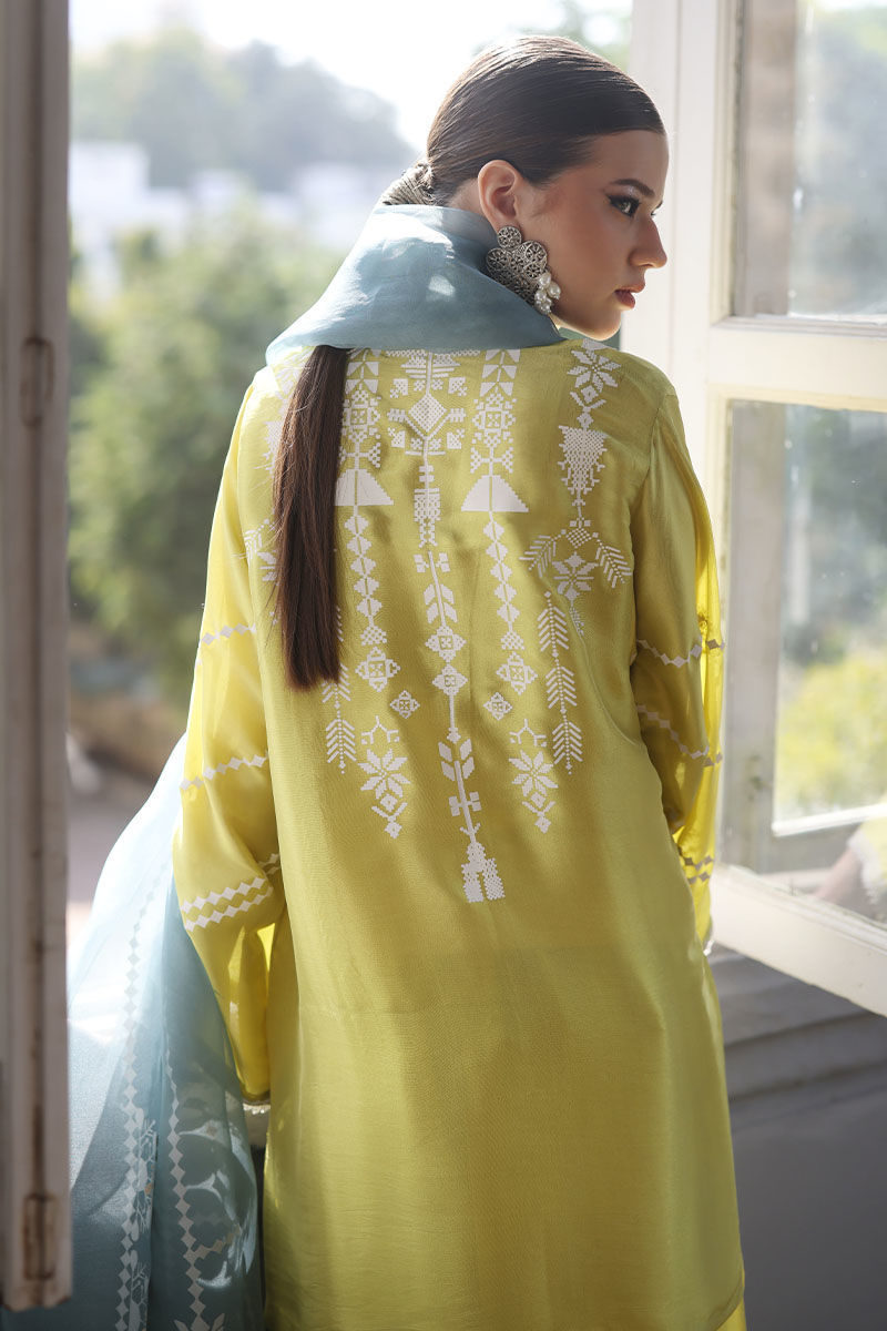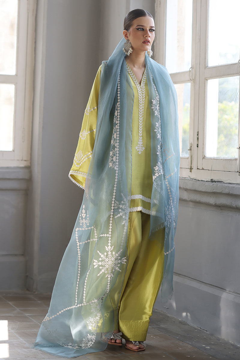 Color: Shirt and Shalwar: Cress Lime, Dupatta: Oil Blue