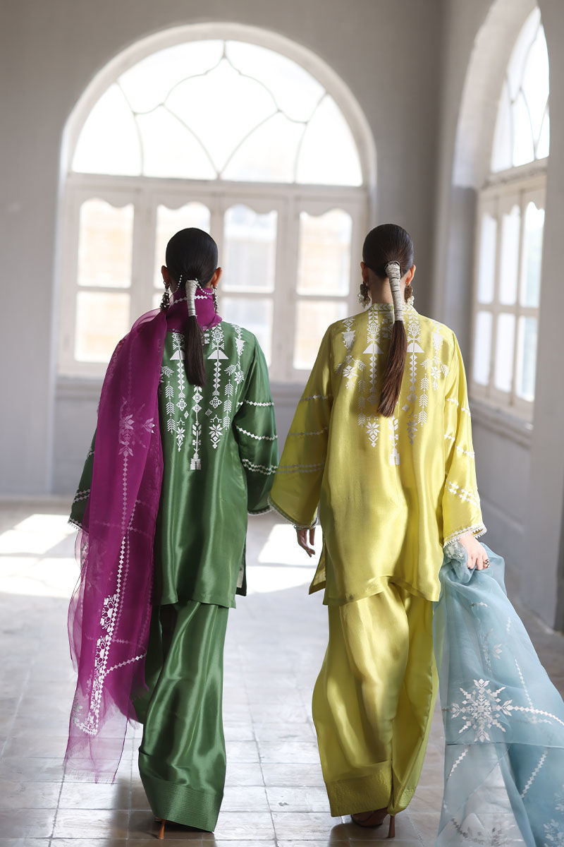 Fabric: Shirt: Pure Shisha Silk, Shalwar: Pure Shisha Silk, Dupatta: Pure Organza