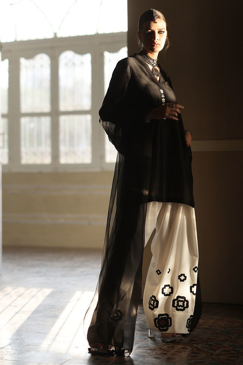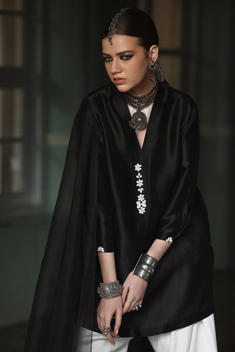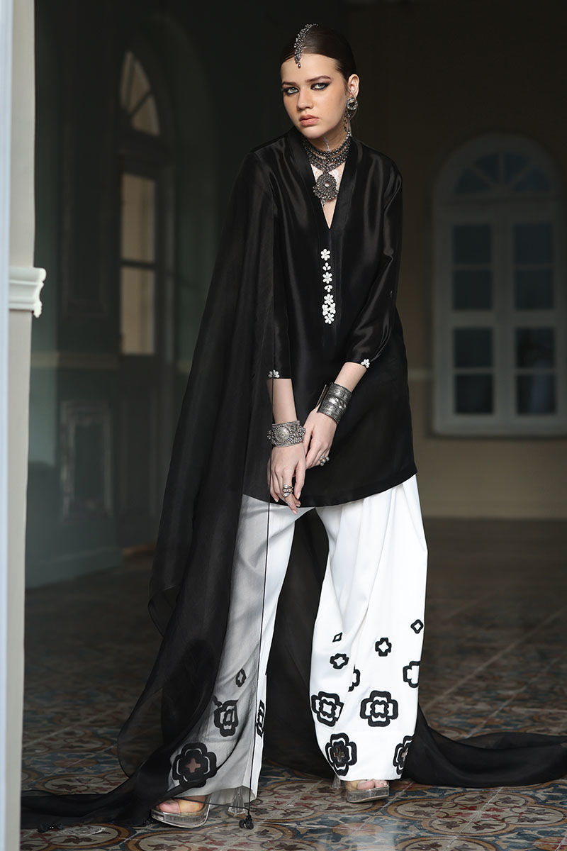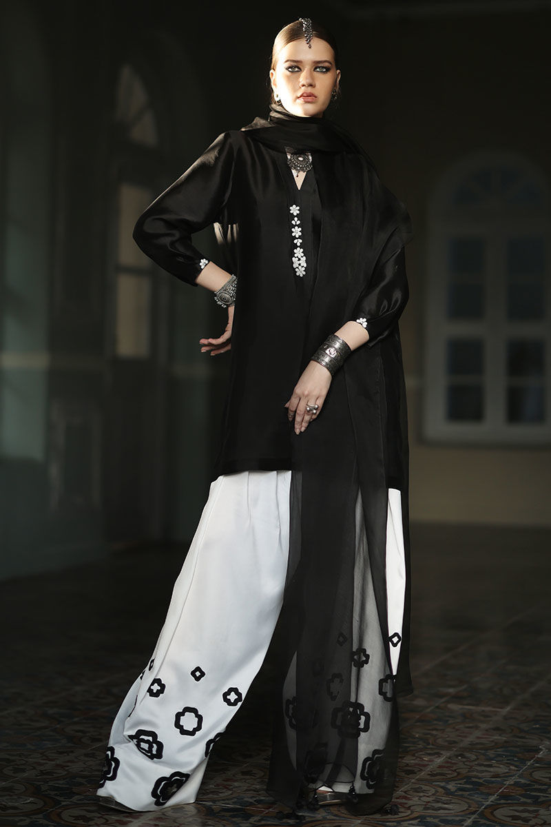 Color: Shirt: Balck, Shalwar: White, Dupatta: Black