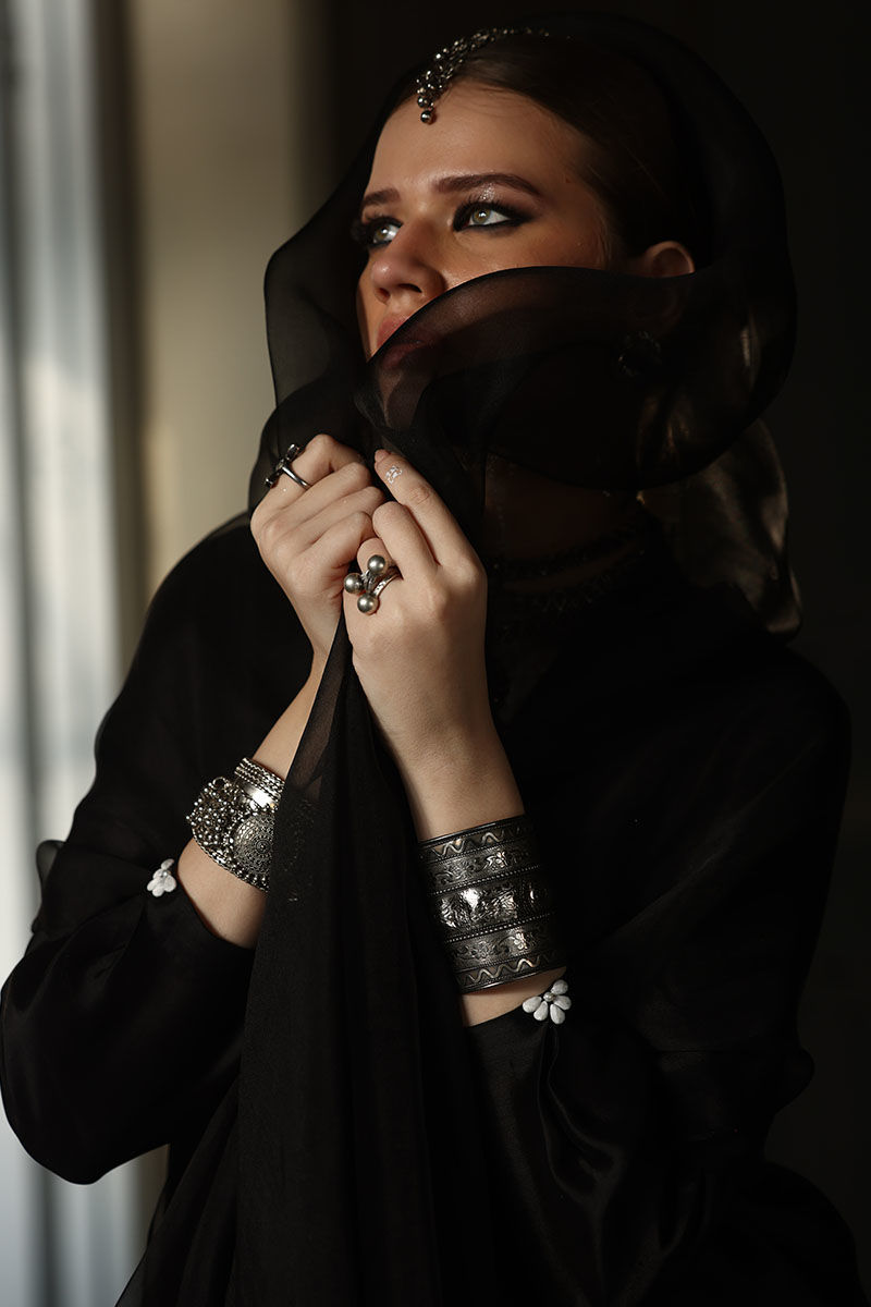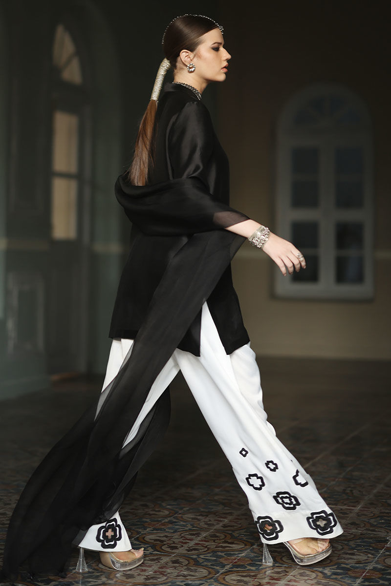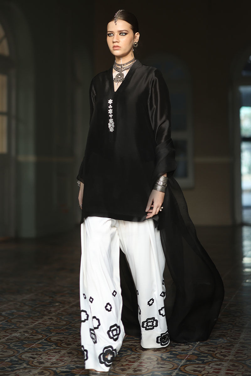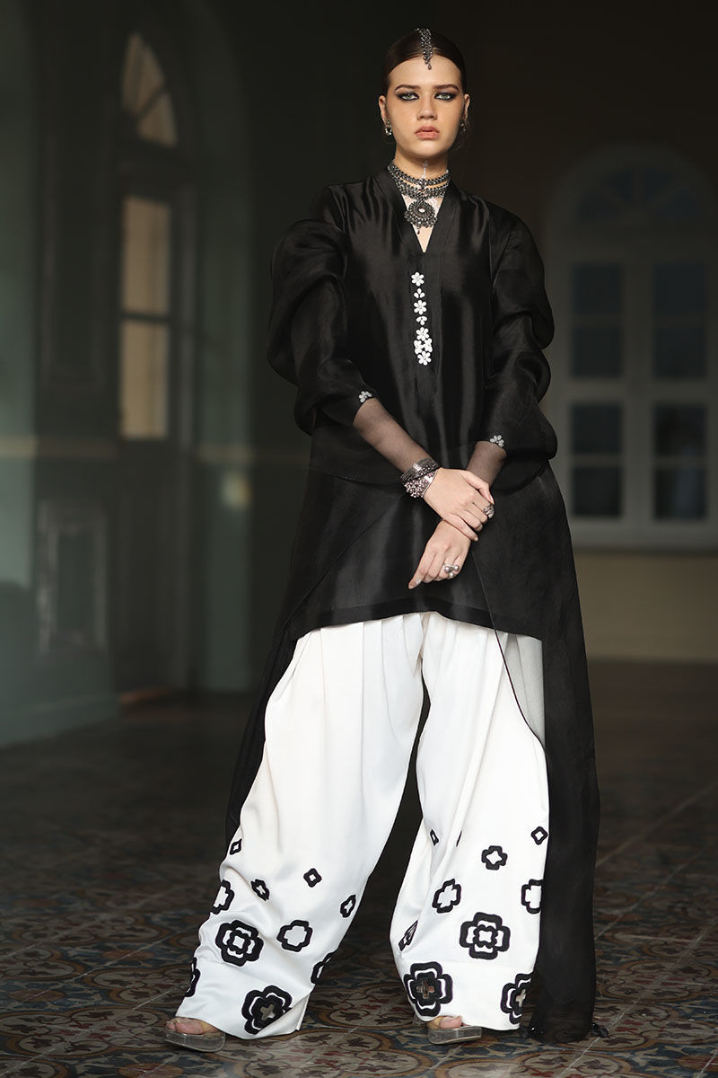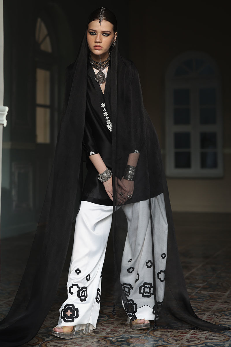 Color: Shirt: Balck, Shalwar: White, Dupatta: Black