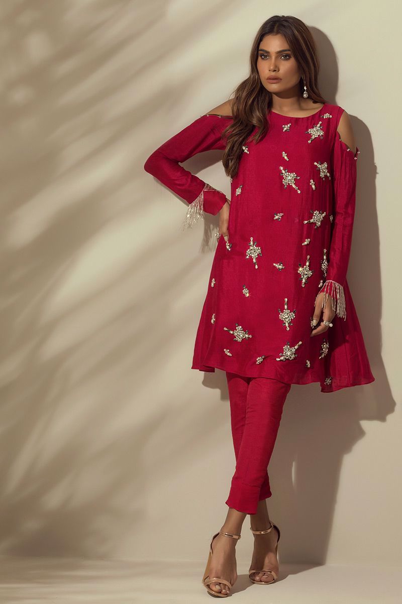 Color: Red Fabric: Khaadi Work Details: Hand worked with stones