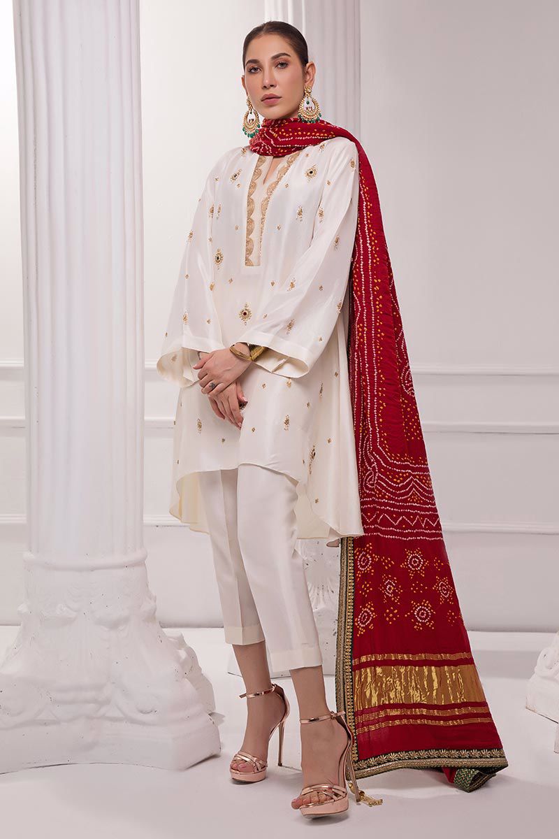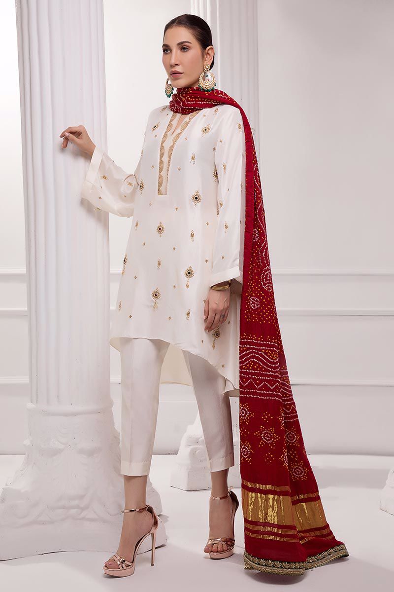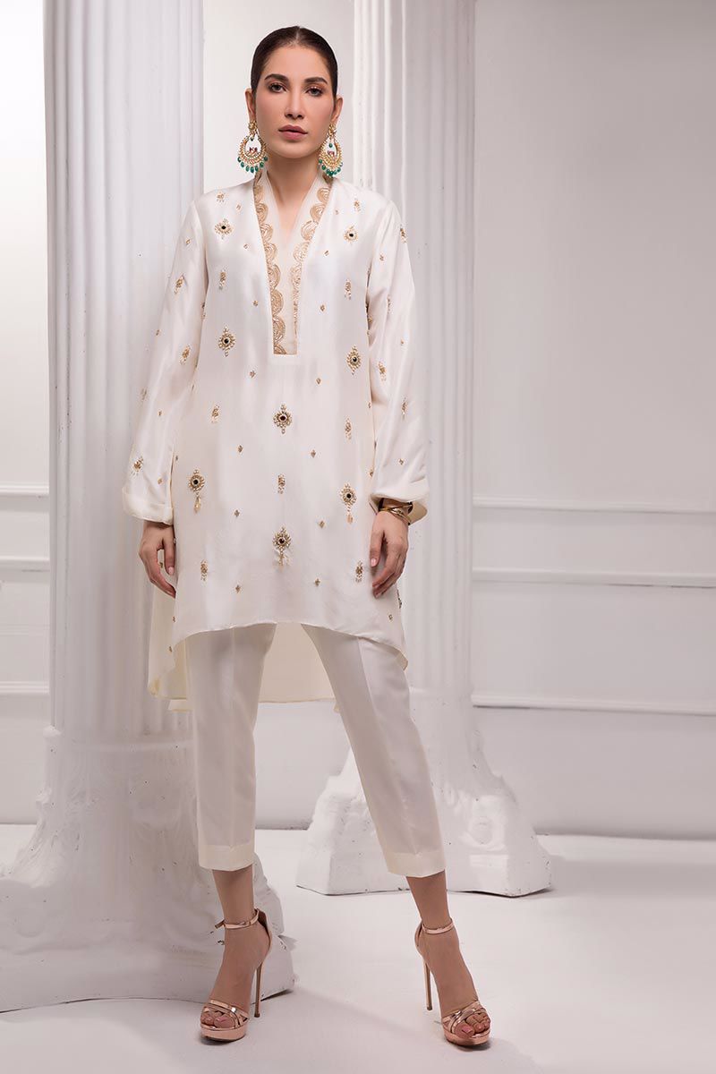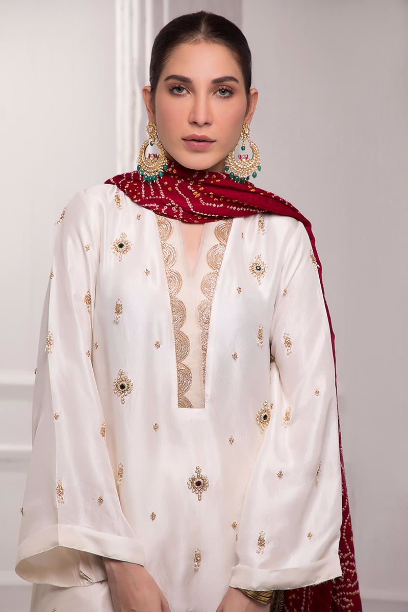 Color: White Fabric: Raw silk Work Details: Embellished