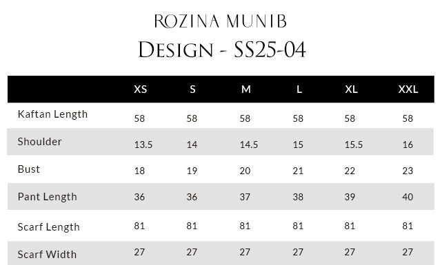 Fabric: Kaftan: Pure Charmeuse Silk, Pants: Crepe Silk and Scarf: Pure Medium Silk
