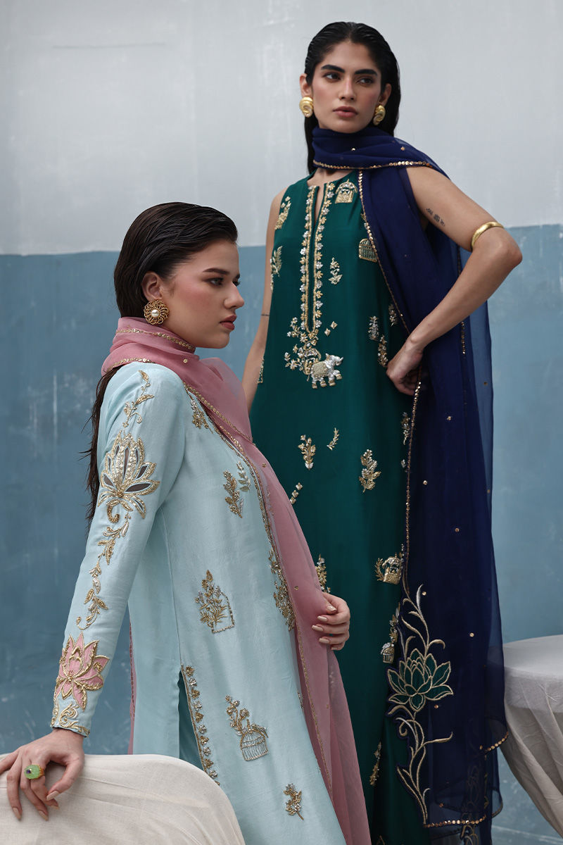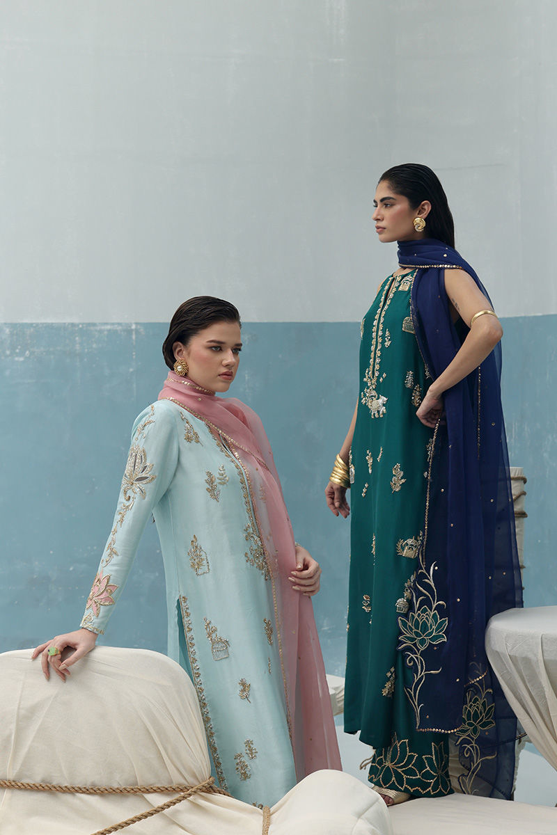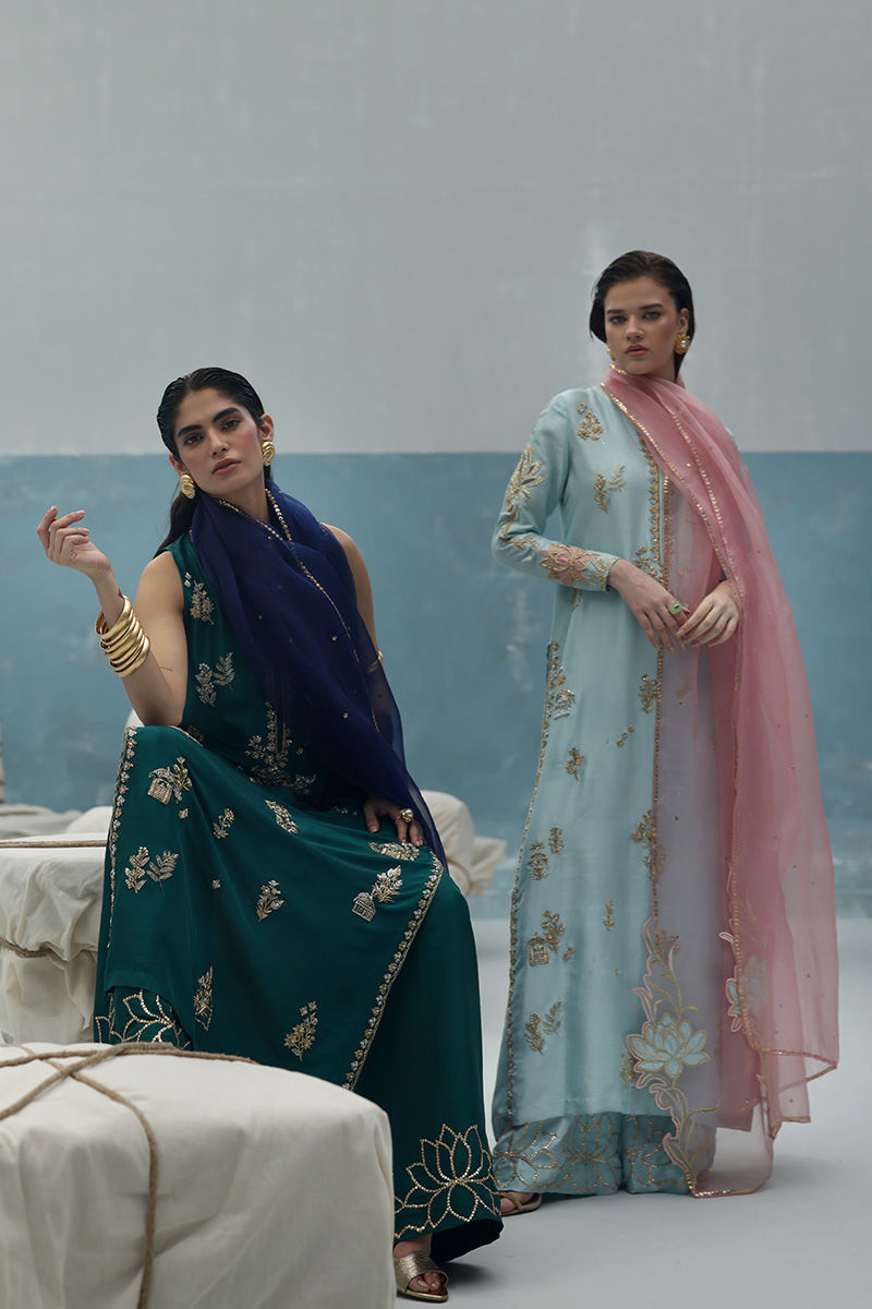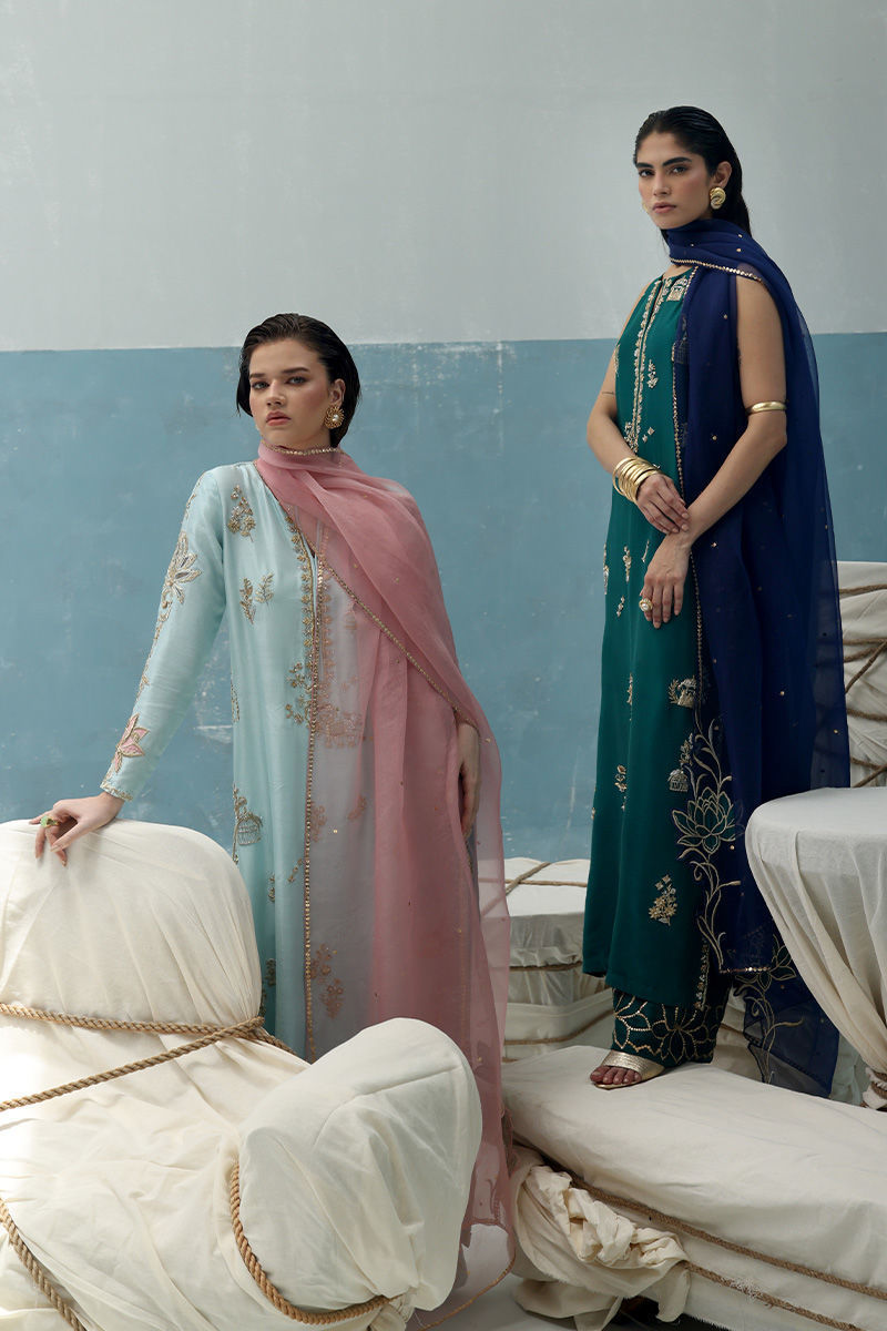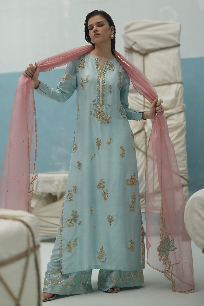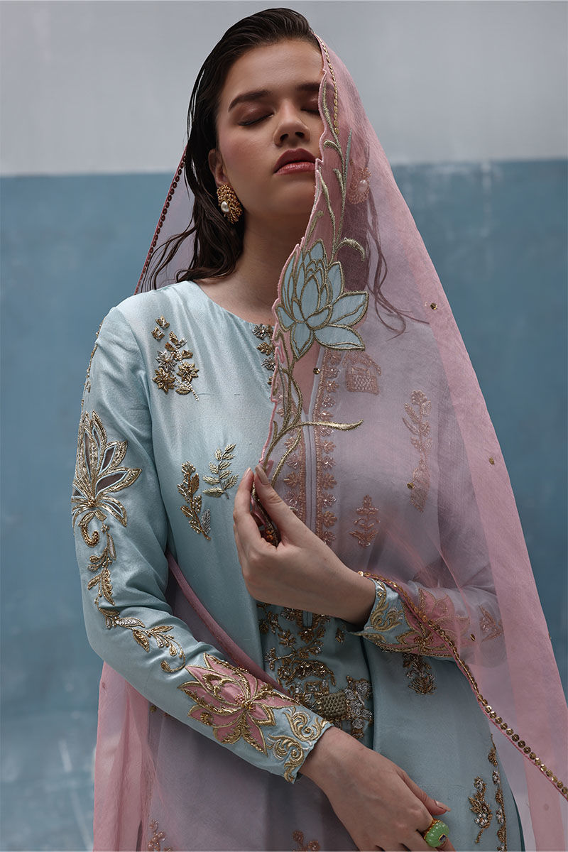 Color: Shirt: Dusty Aqua, Dupatta: Blush Pink