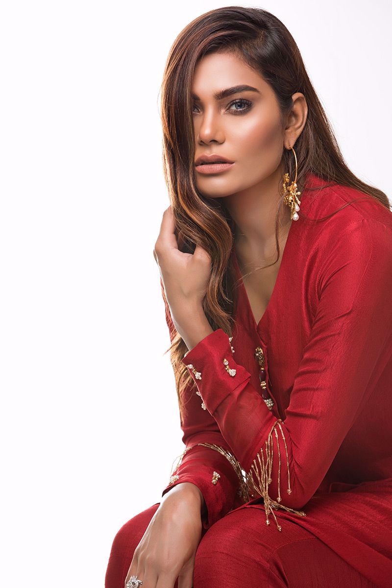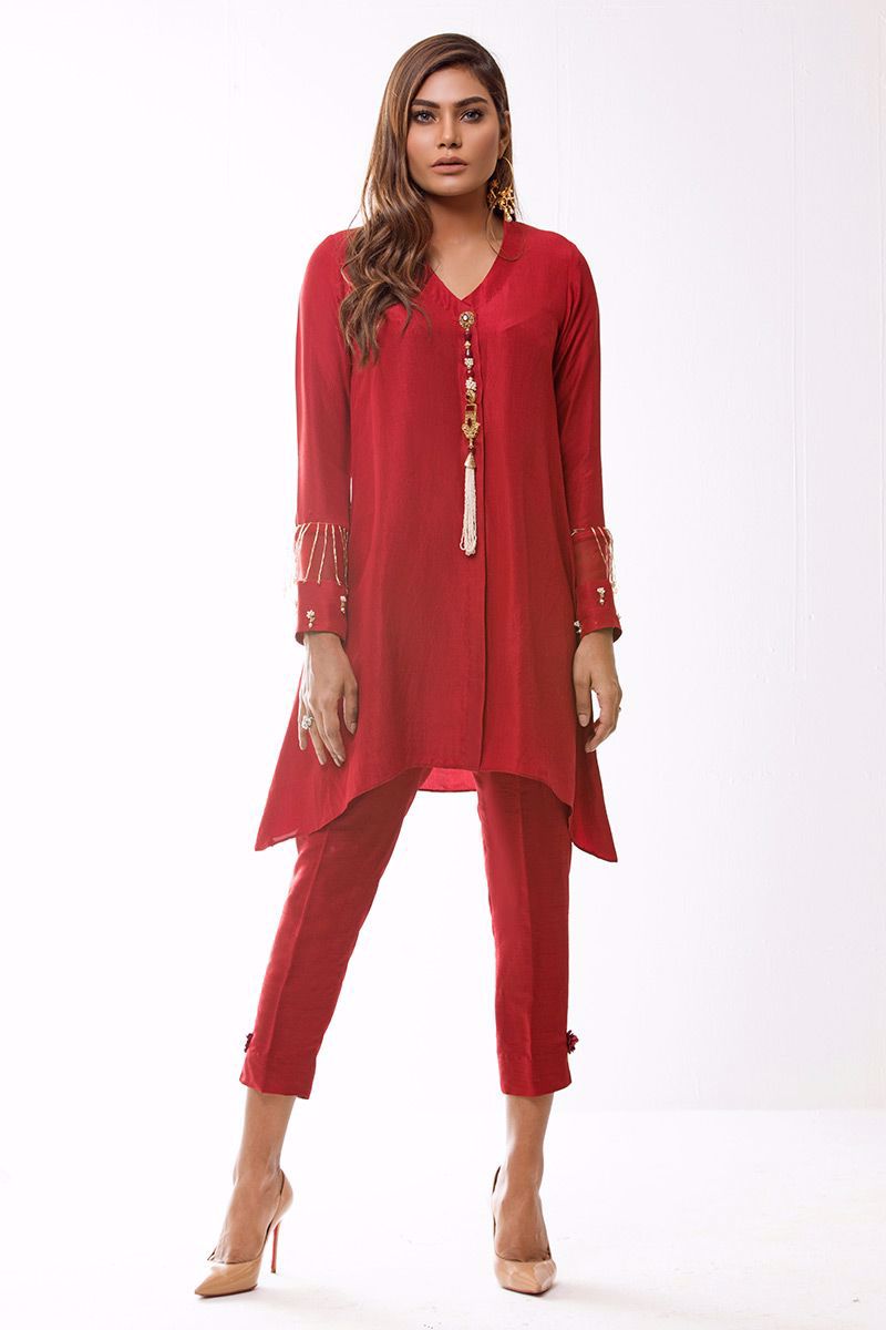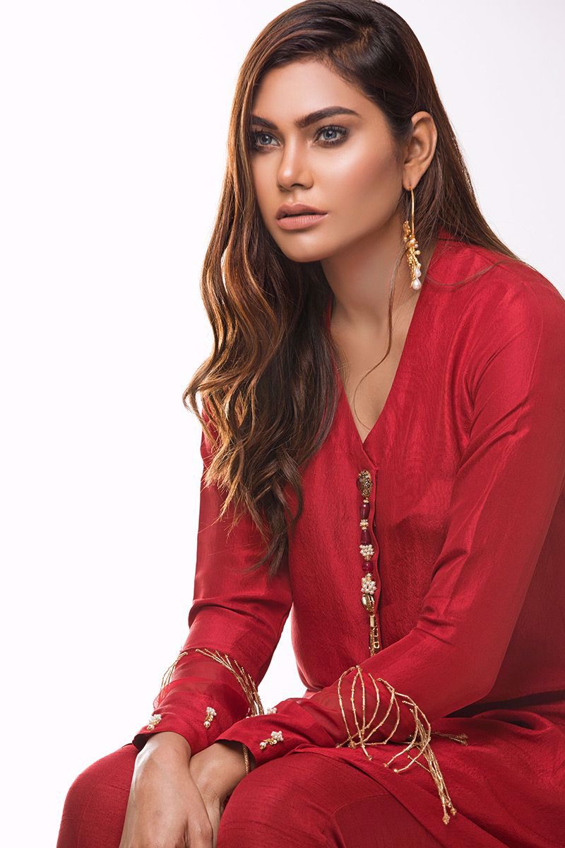 Same colored Dupatta with trendy hangings and embellished Pants can be additionally bought with this gorgeous outfit.