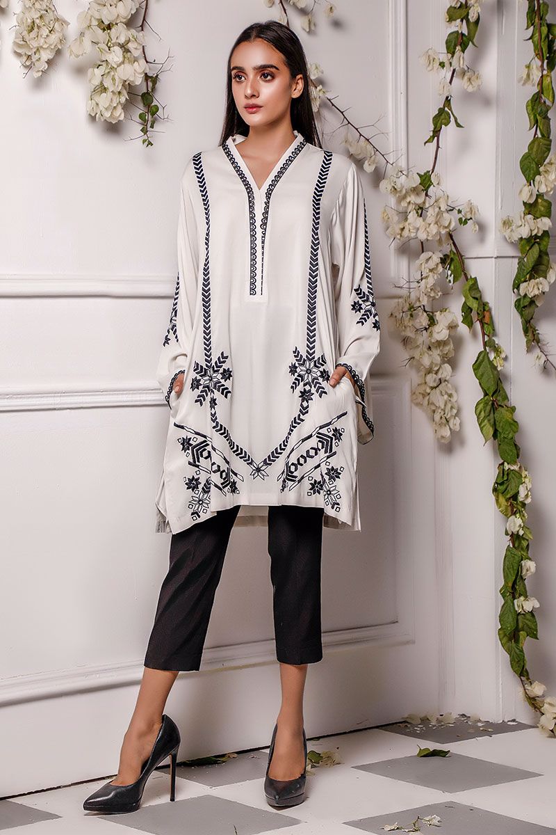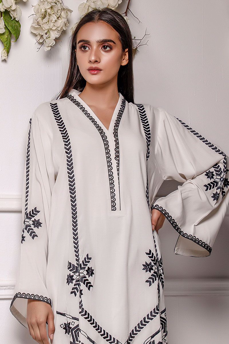 Color: Ivory Fabric: Linen Work Details: Embroidered