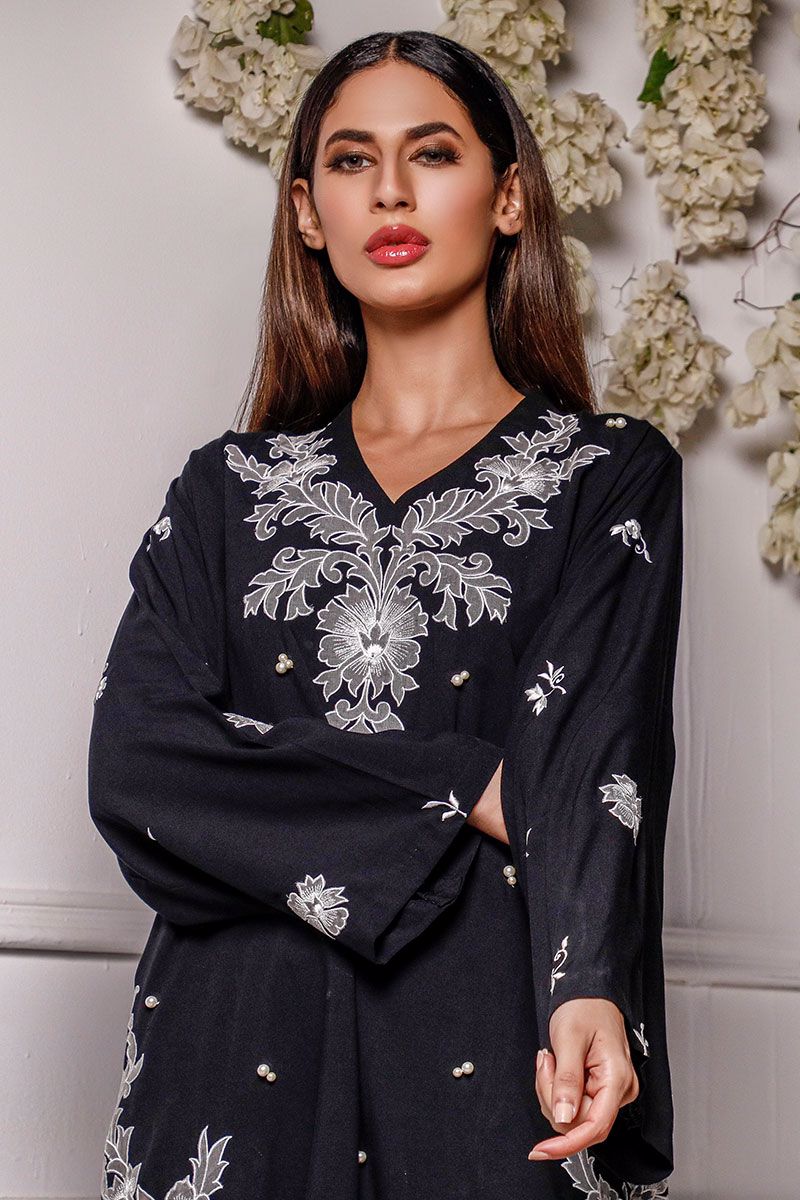 Color: Black Fabric: Linen Work Details: Embroidered